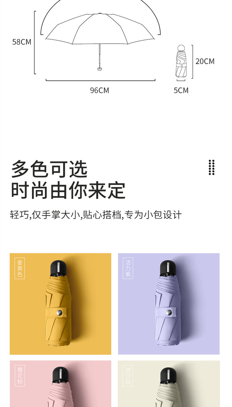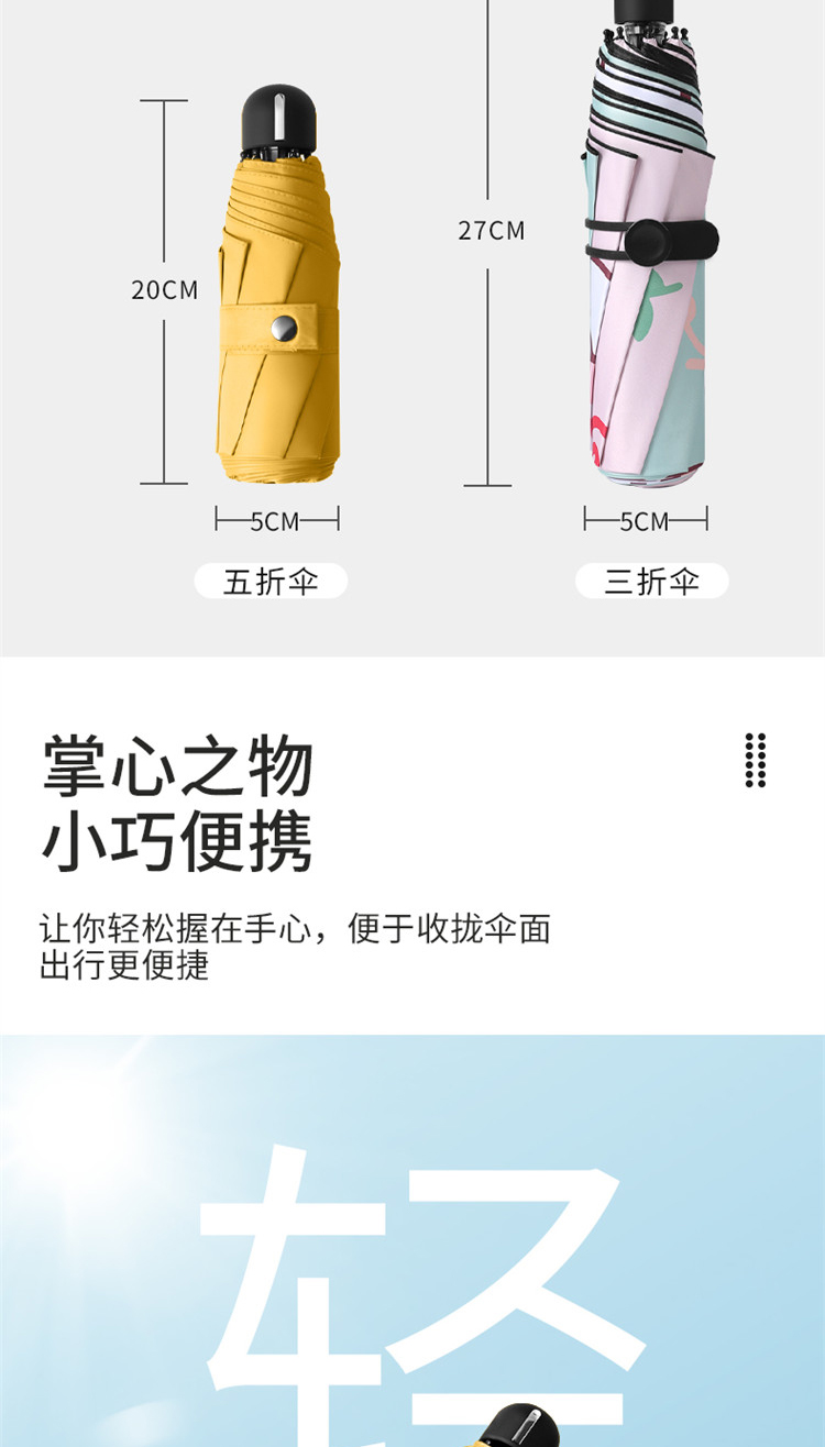 美度(MAYDU) M5523 五折防晒晴雨伞 55cm*8K (单位:把) 樱花粉
