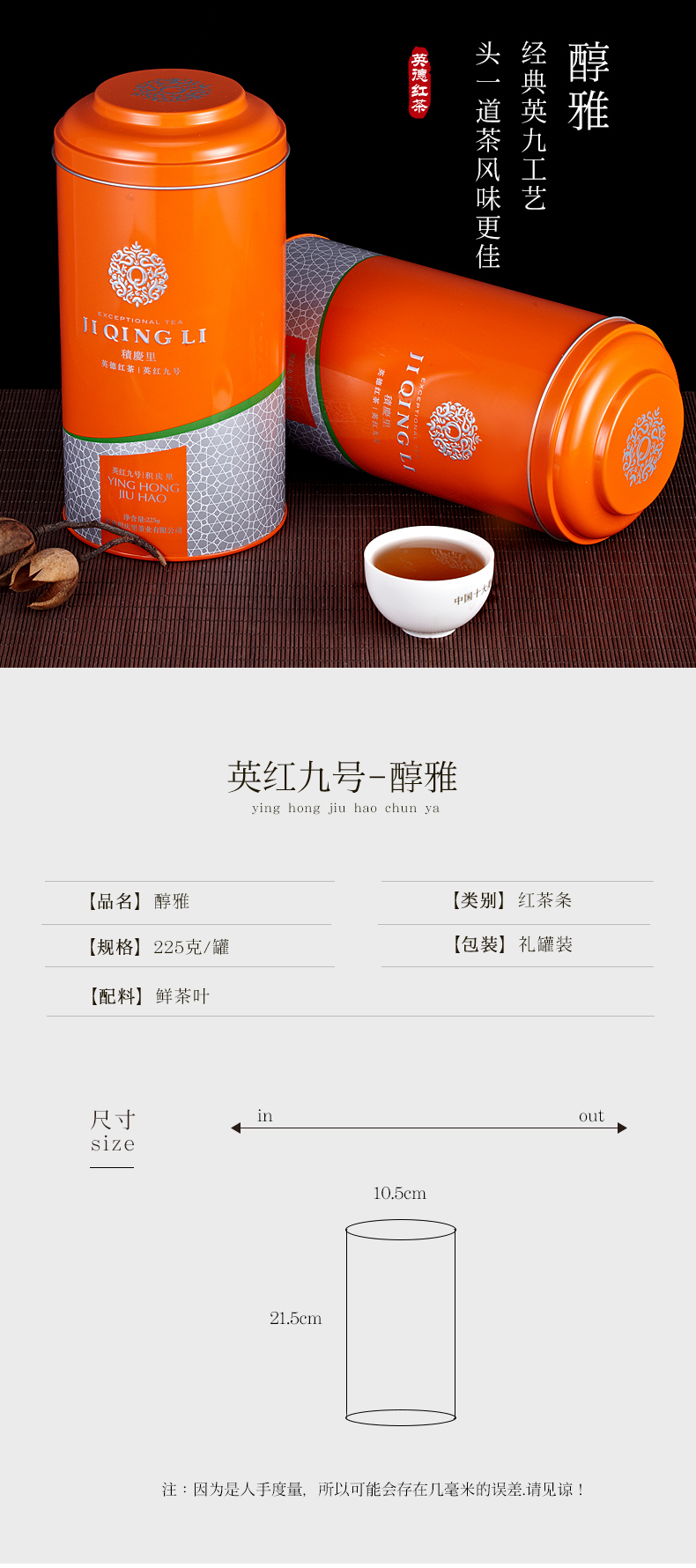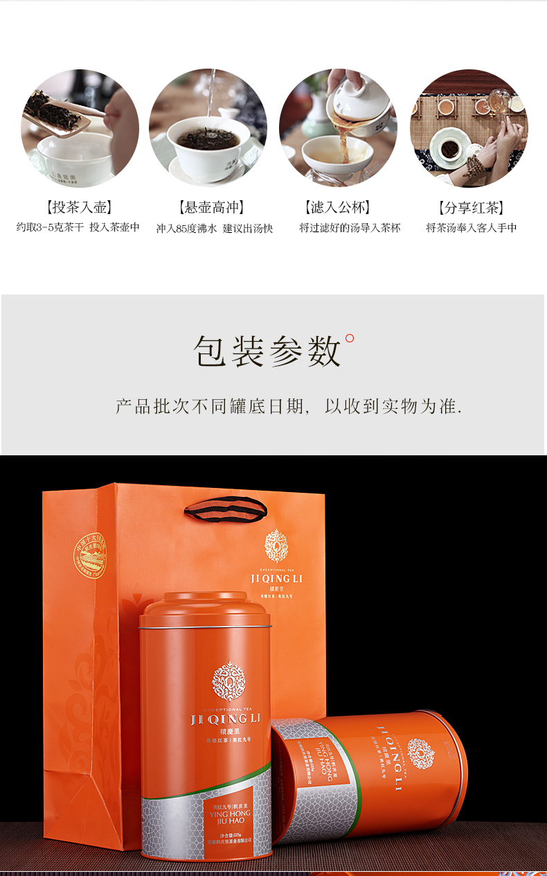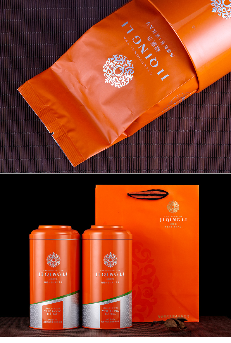 积庆里有机茶叶英红九号英德红茶大罐装英式一级高香红茶茶叶醇雅225克放心茶 灰橙色