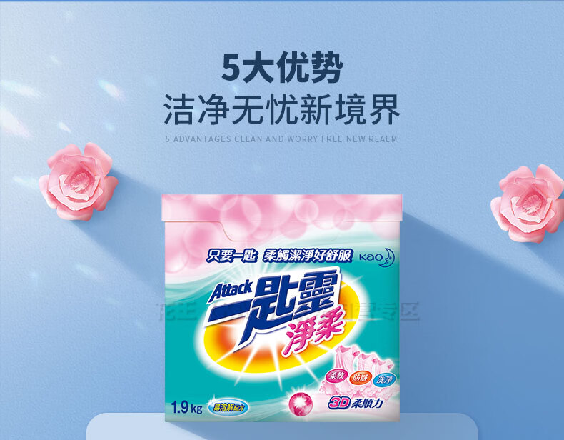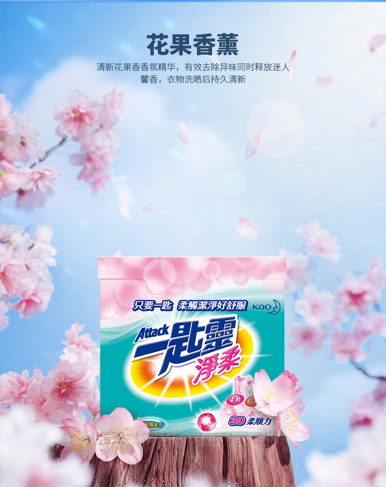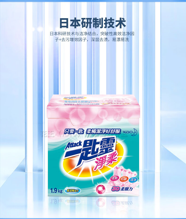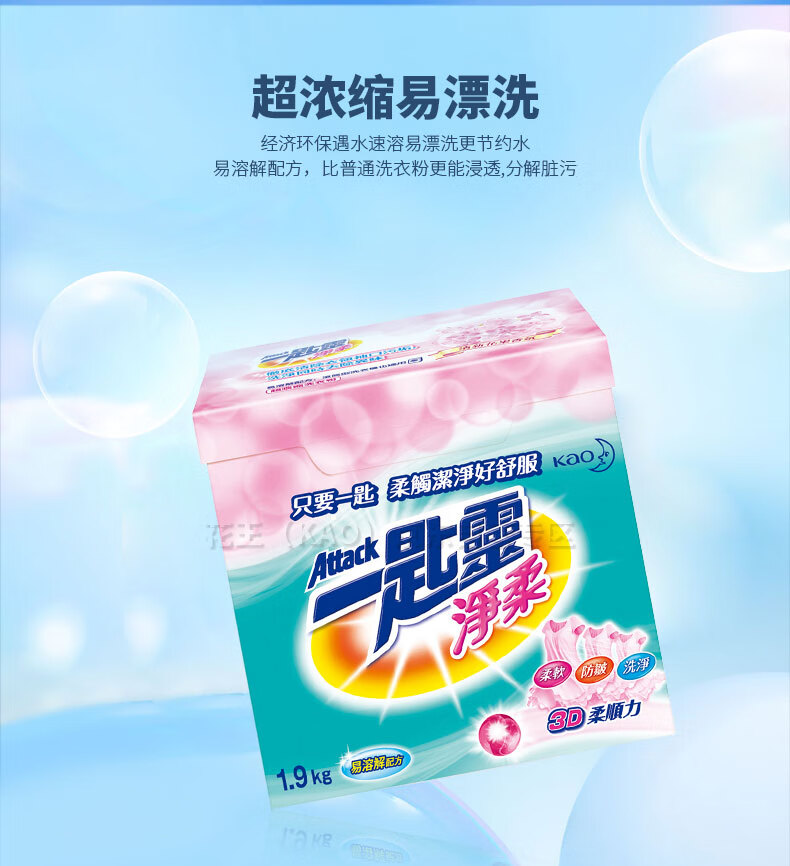 花王(KAO)一匙灵净柔超浓缩洗衣粉/盒 粉色