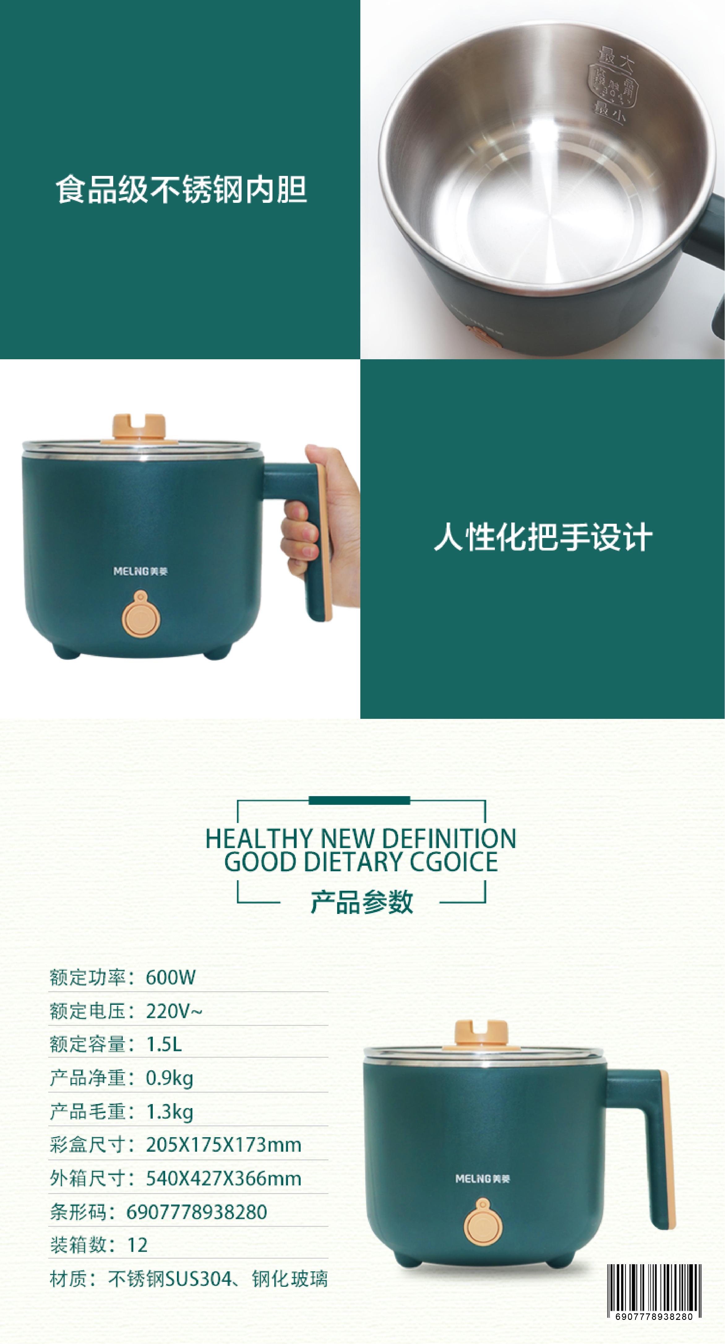 美菱(MELNG)多功能电煮锅MT-LC1501 1.5L (单位:台) 绿色