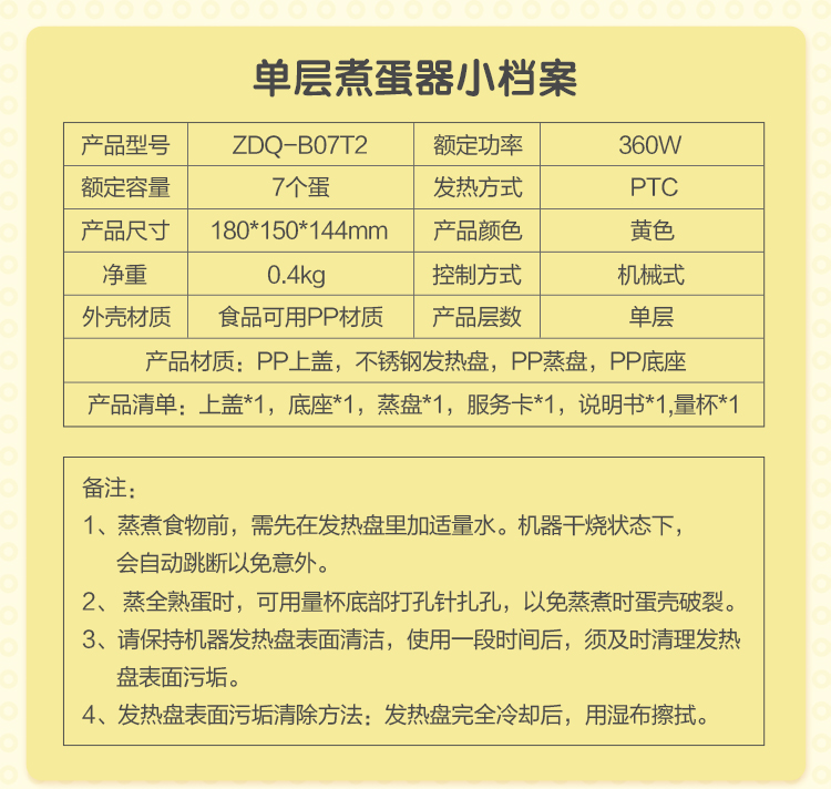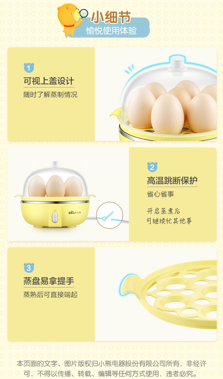 小熊(Bear)单层煮蛋器ZDQ-B07T2(新老包装随机发货)台 黄色