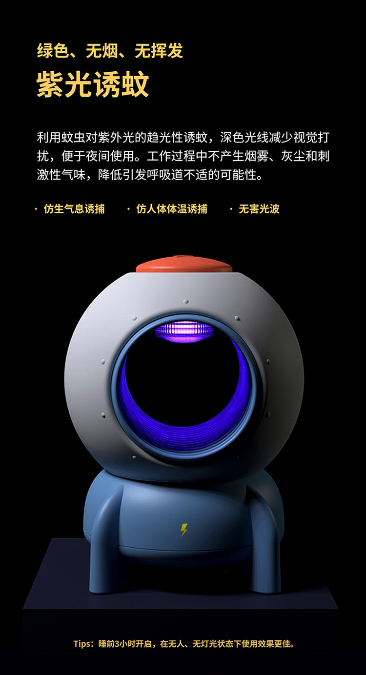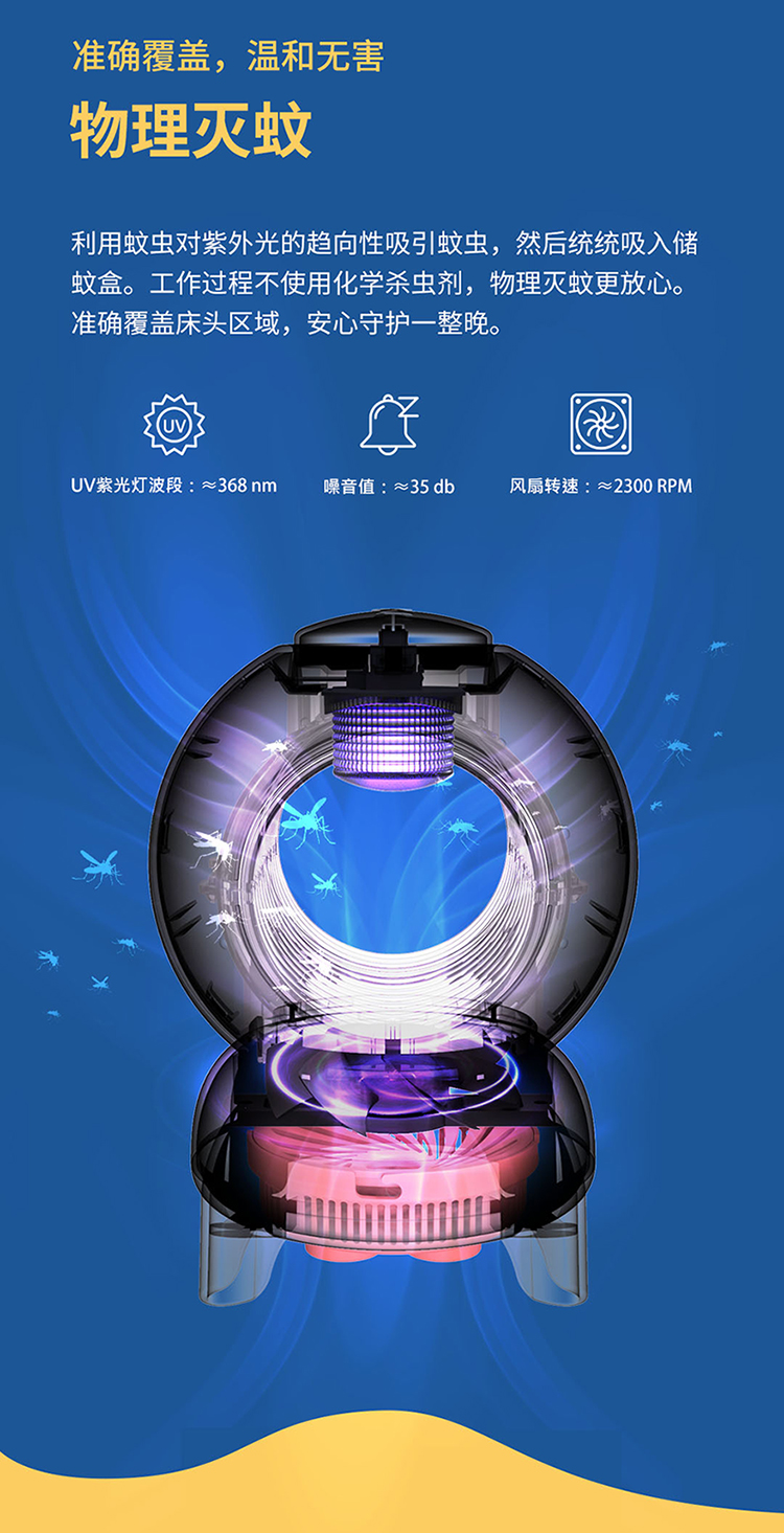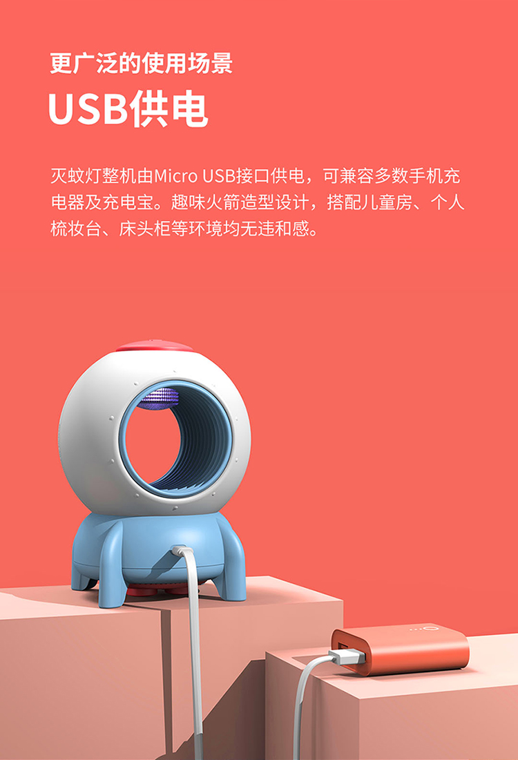 向物火箭灭蚊灯USB居家室内卧室静音物理灭蚊无辐射母婴可用小家电同款 白蓝色