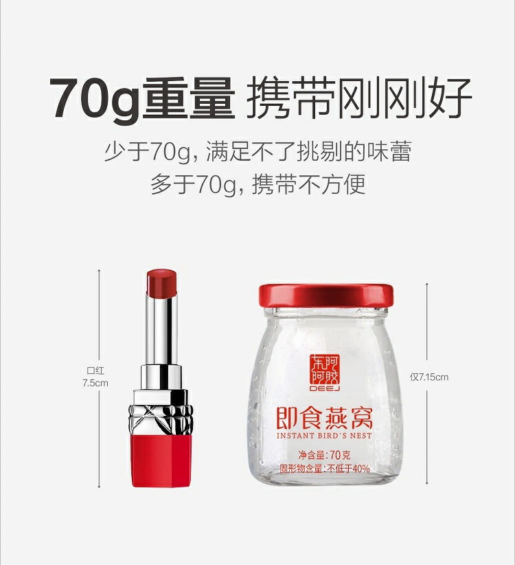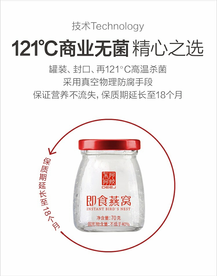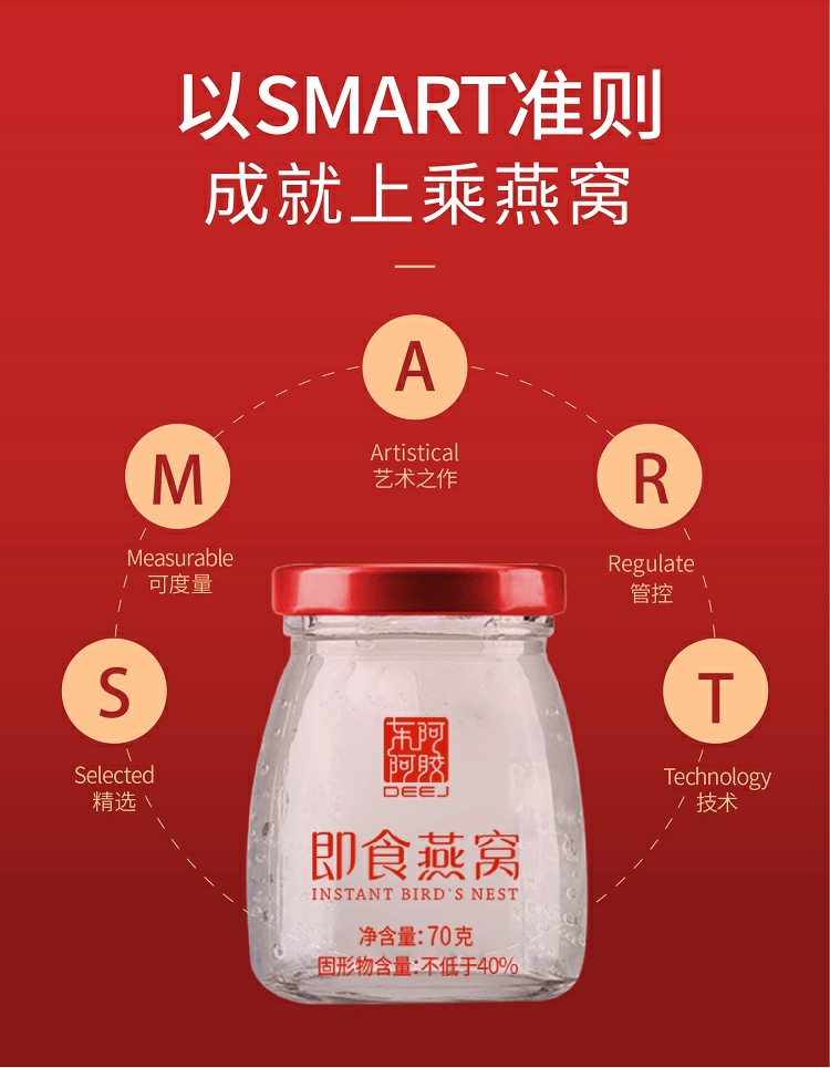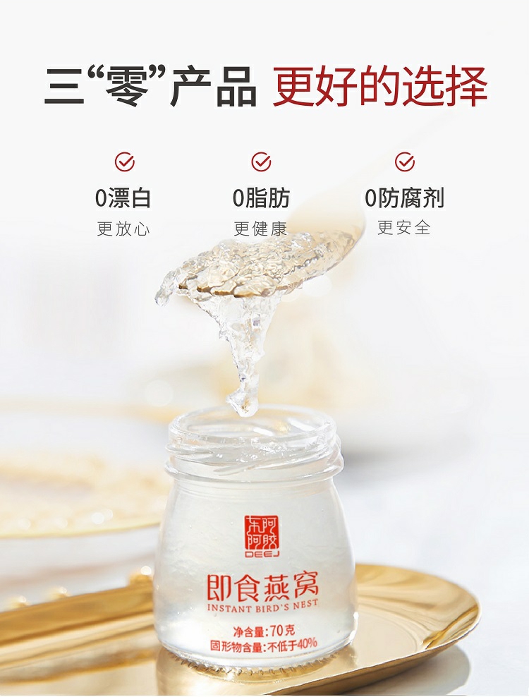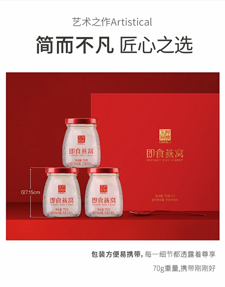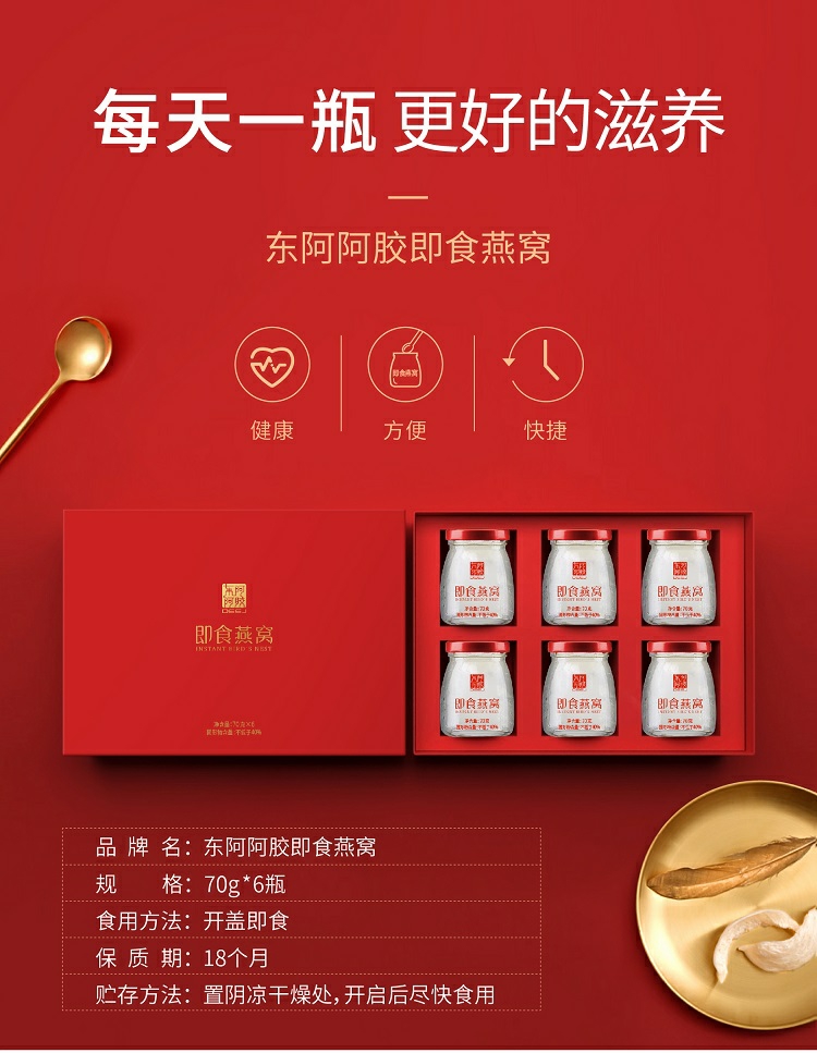 东阿阿胶 即食燕窝(固形物不低于40%)70g*6瓶一盒 红色 红色