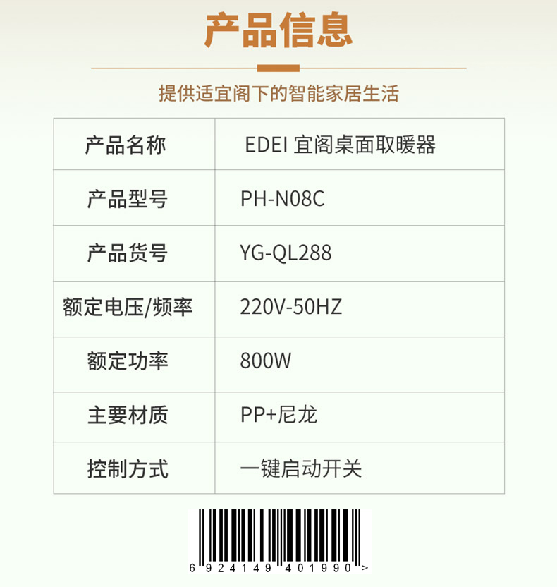 EDEI宜阁PH-N08C桌面取暖器(单位:台) 绿色