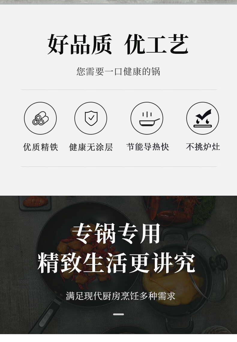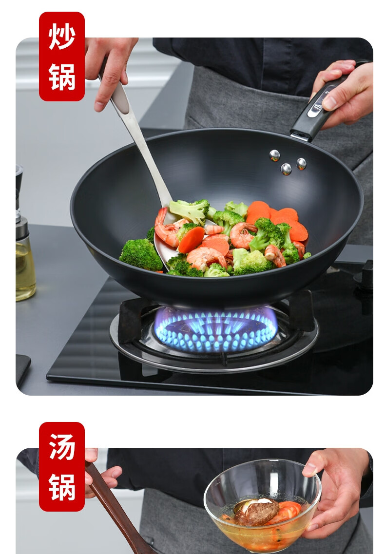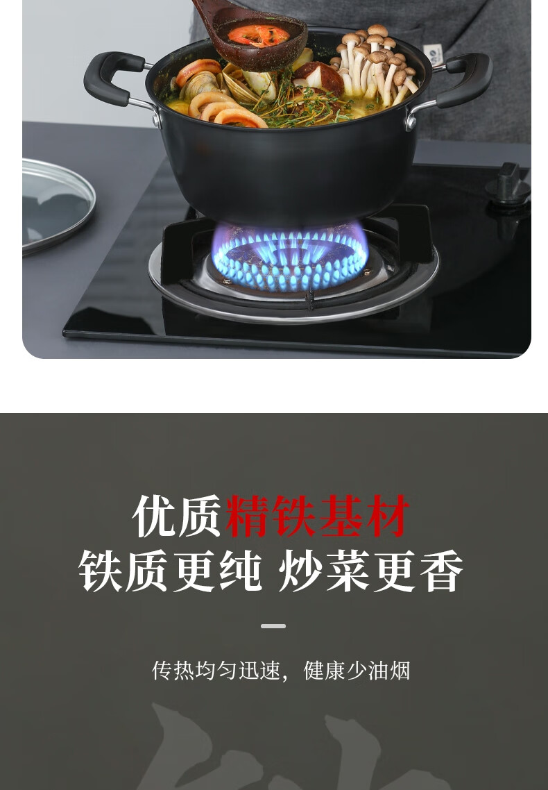 张小泉C35270100 锦厨系列精铁锅具两件套 黑色