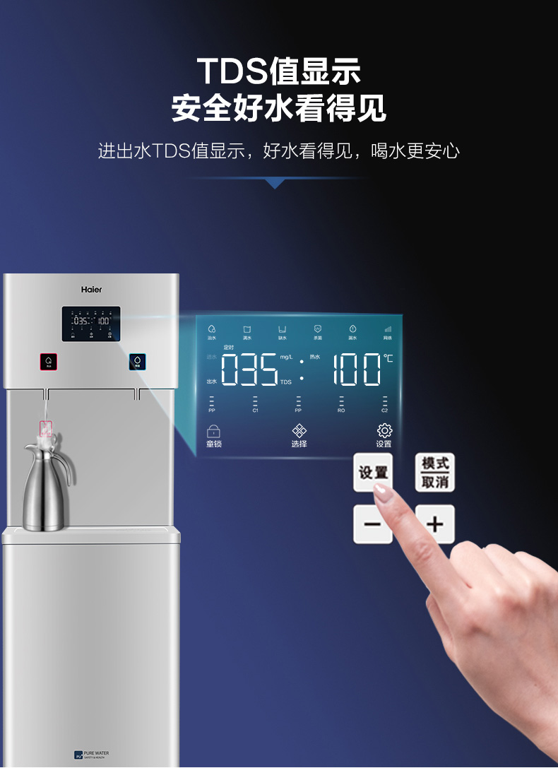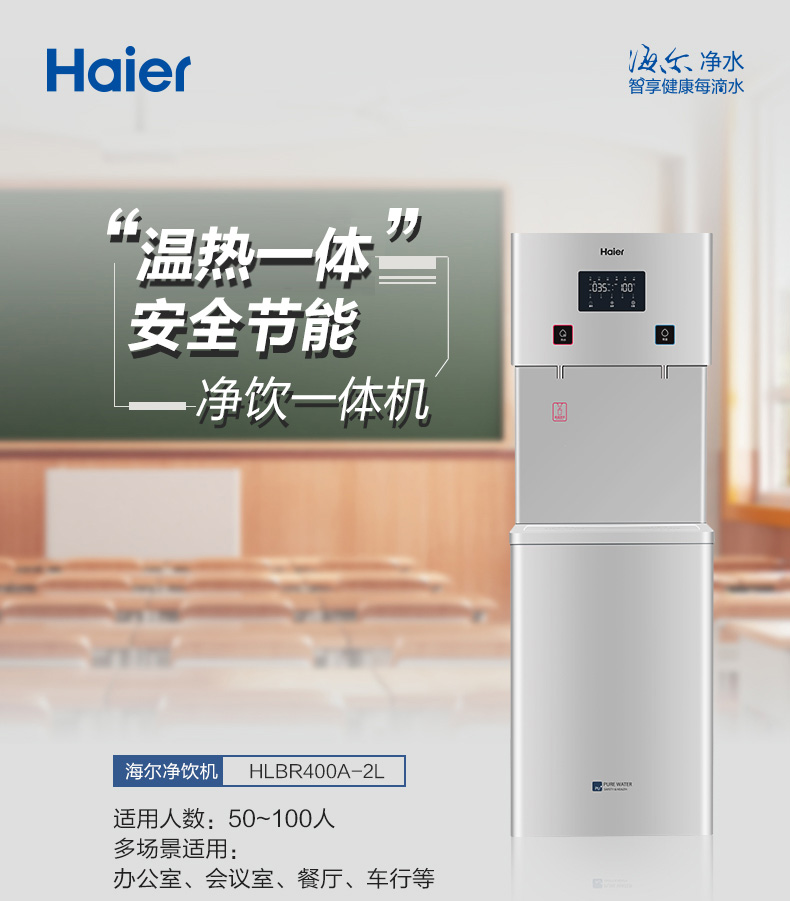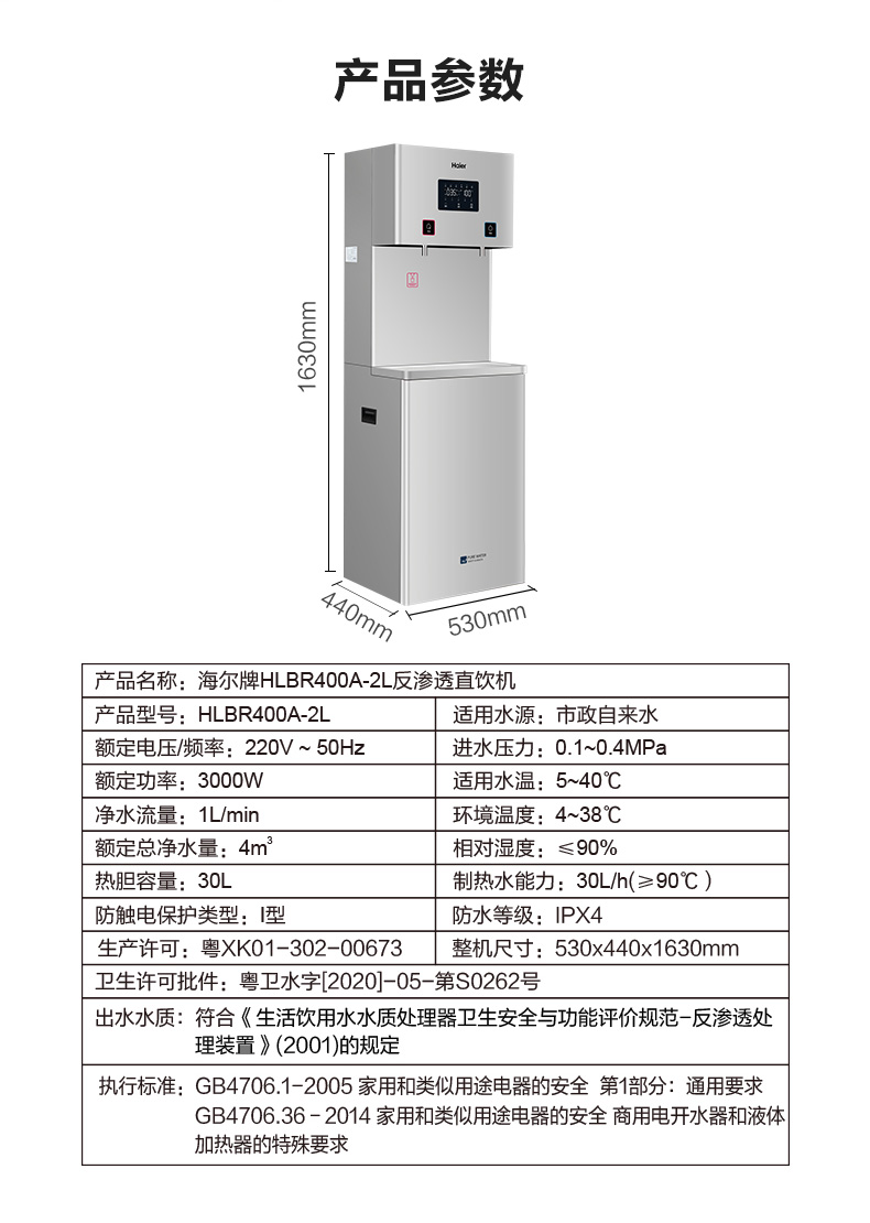 海尔(Haier)商用净水器纯水机 立式反渗透饮水机 加热型商务净饮机HLBR400A-2L 银色