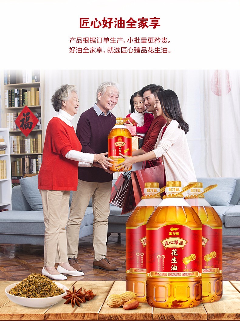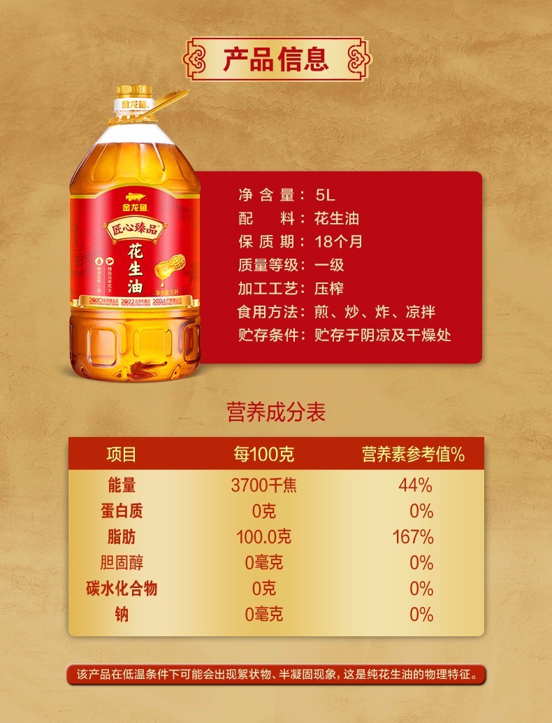 金龙鱼匠心臻品花生油5L 桶【新疆,甘肃、西藏,青海,内蒙古等偏远地区缺货】 金色