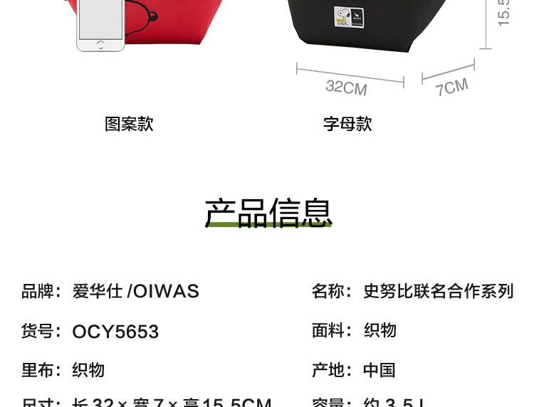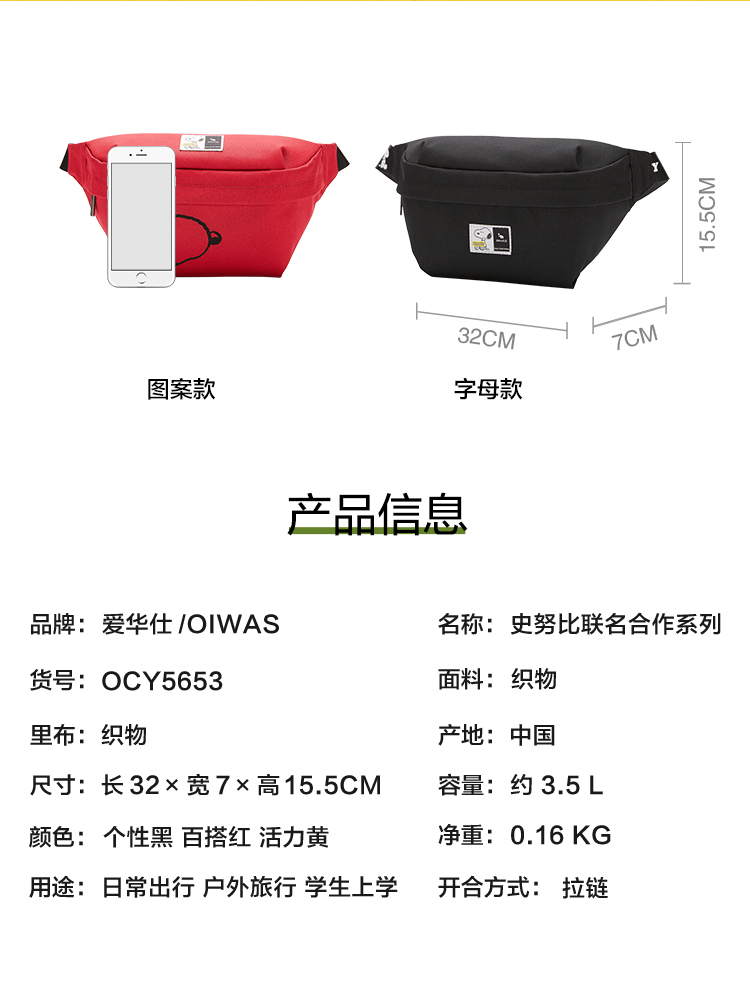 爱华仕(OIWAS)史努比联名款腰包OCY5653(单位:个) 黄色