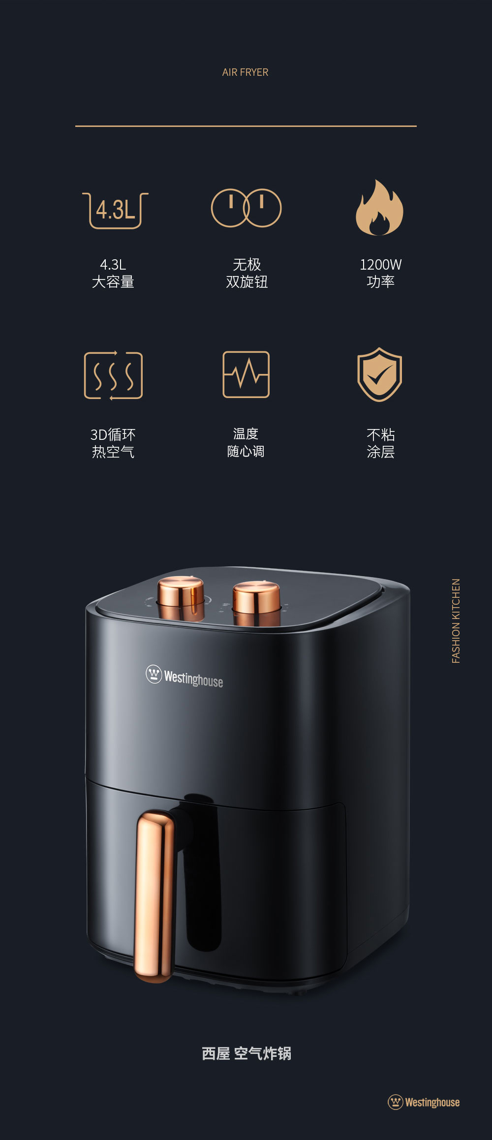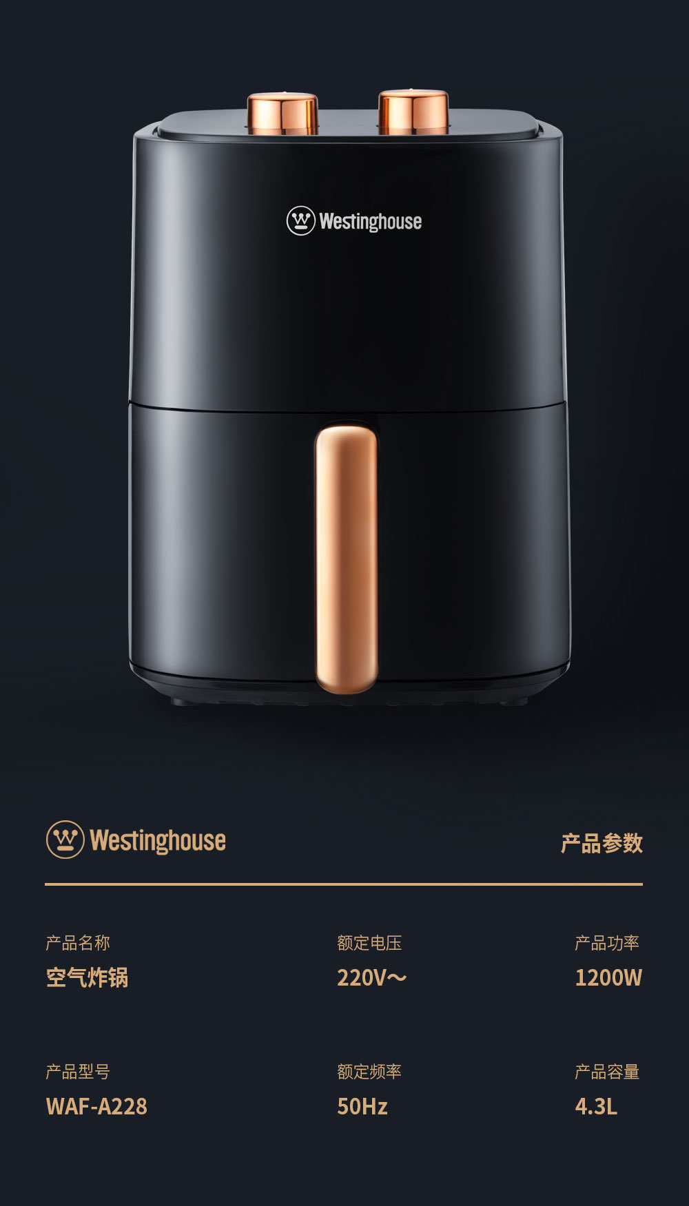 西屋Westinghouse-空气炸锅WAF-A228 4.3L(单位:台) 黑色