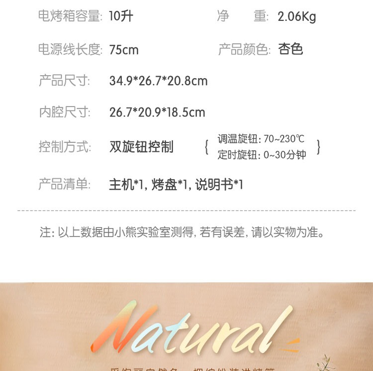 小熊(Bear)电烤箱10L DKX-F10M6(单位:台) 杏色