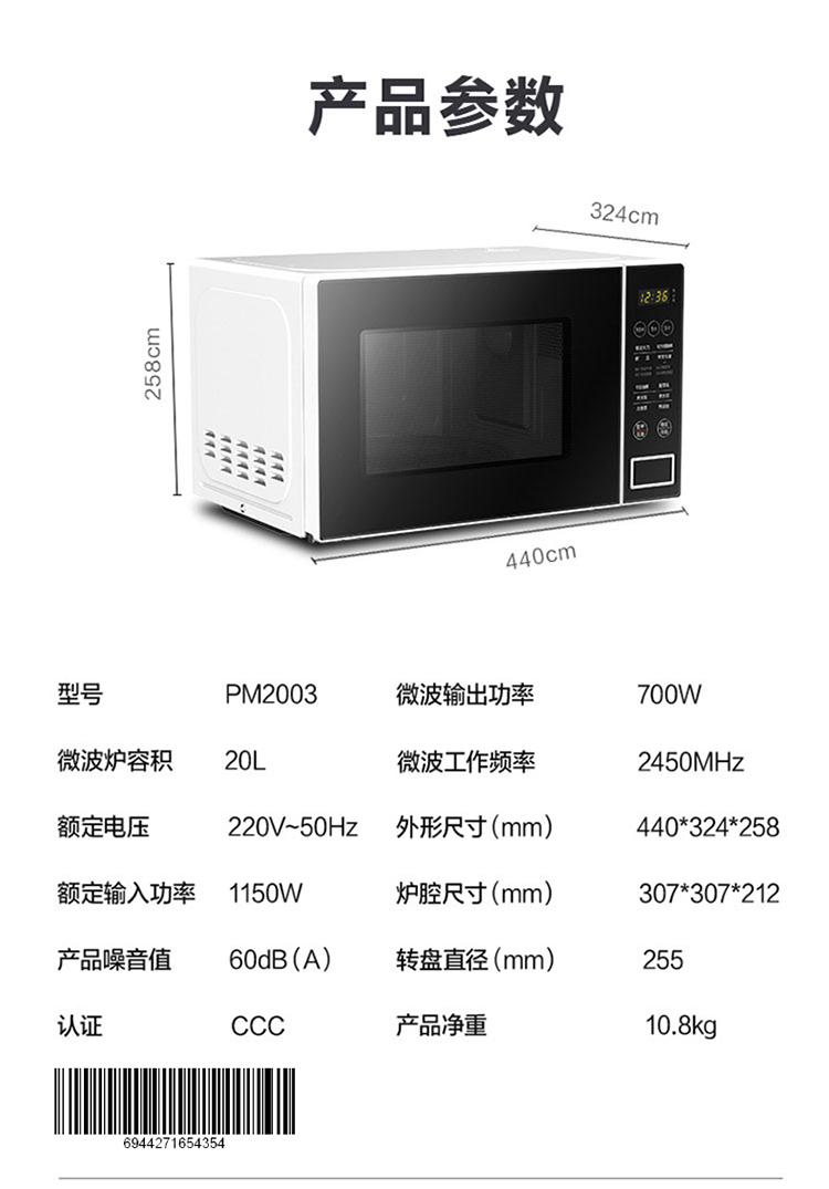 美的(Midea)微波炉桌面炉 20L容量 PM2003(单位:台) 黑色