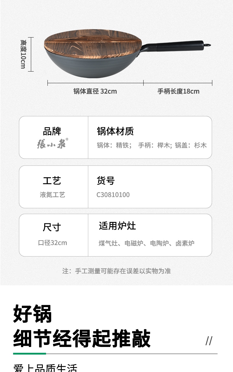 张小泉 匠运老铁锅32cm C30810100单位:个 黑色
