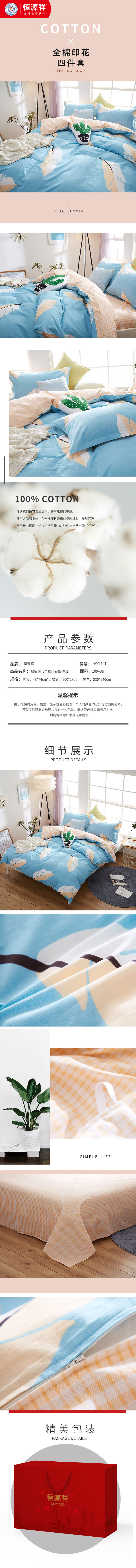 恒源祥摇曳纷飞全棉印花四件套HYX114TJ200*230cm(单位:套)蓝色 蓝色