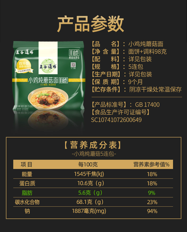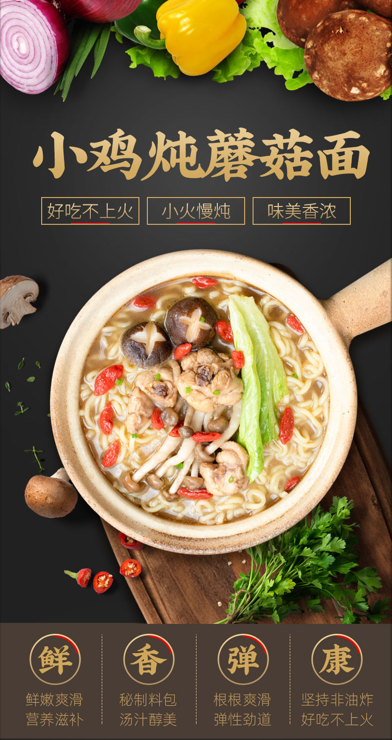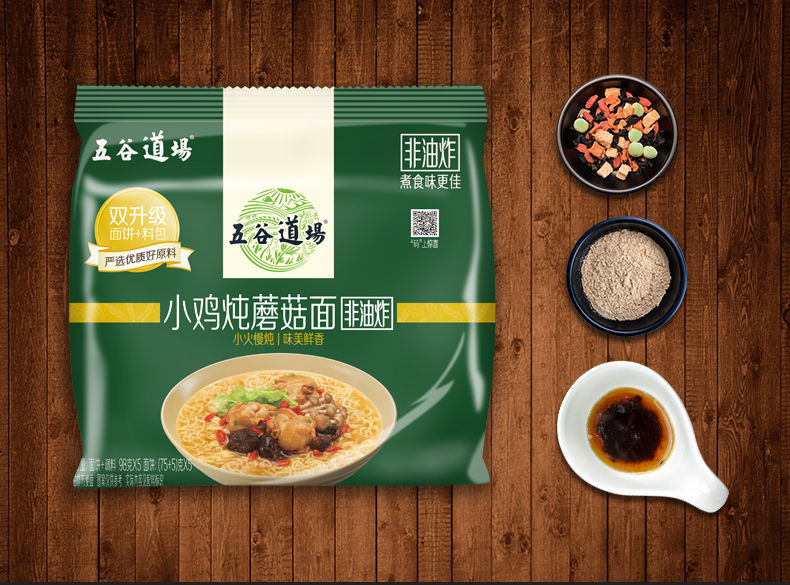 五谷道场 小鸡炖蘑菇面98g/面饼+料包 非油炸方便面 速食网红泡面 小鸡炖蘑菇面 98g*5包/面饼+料包