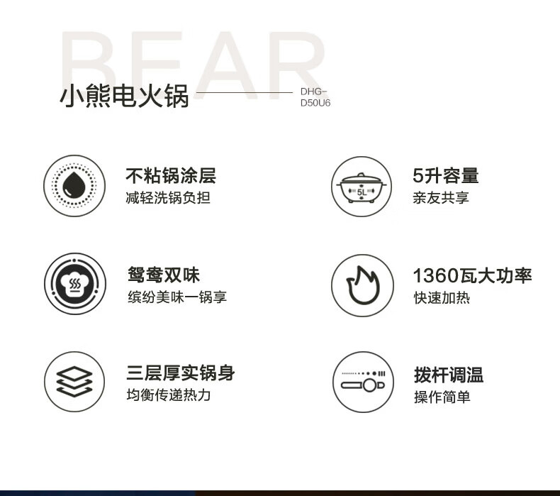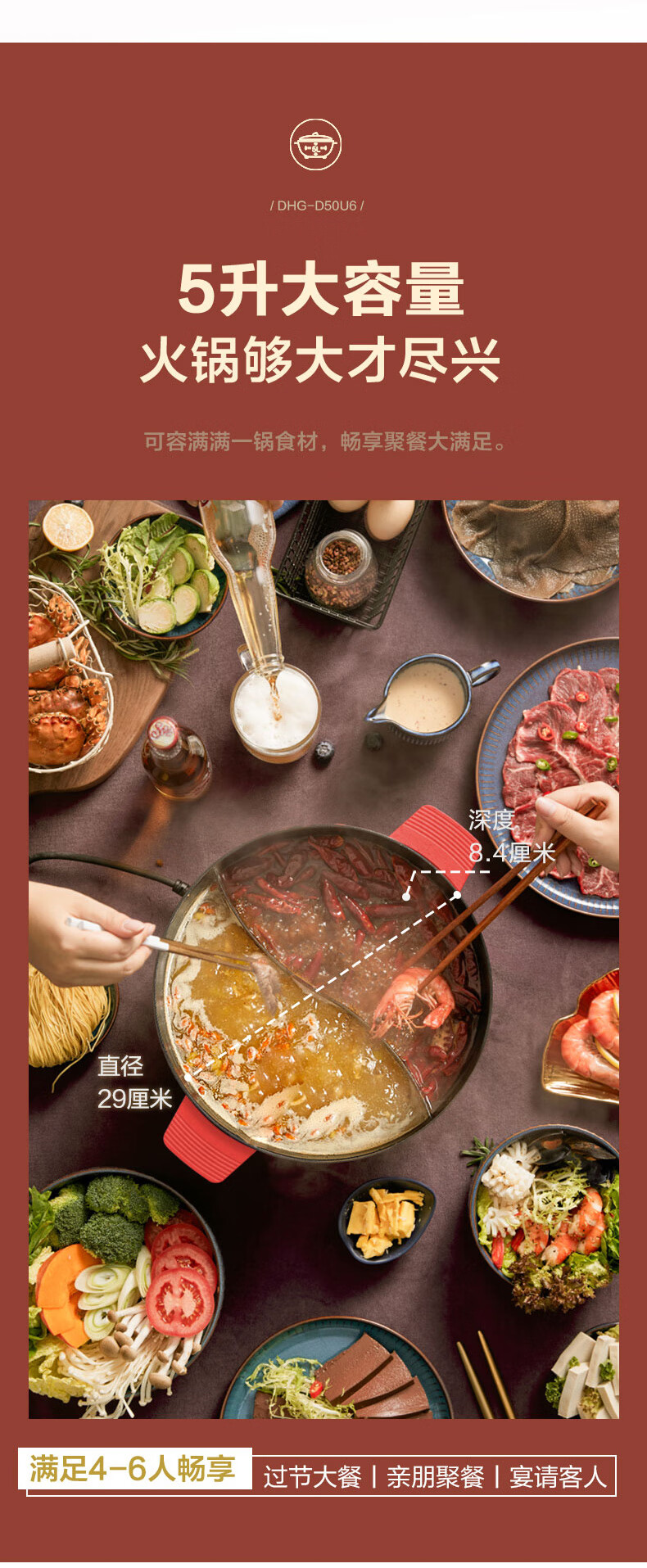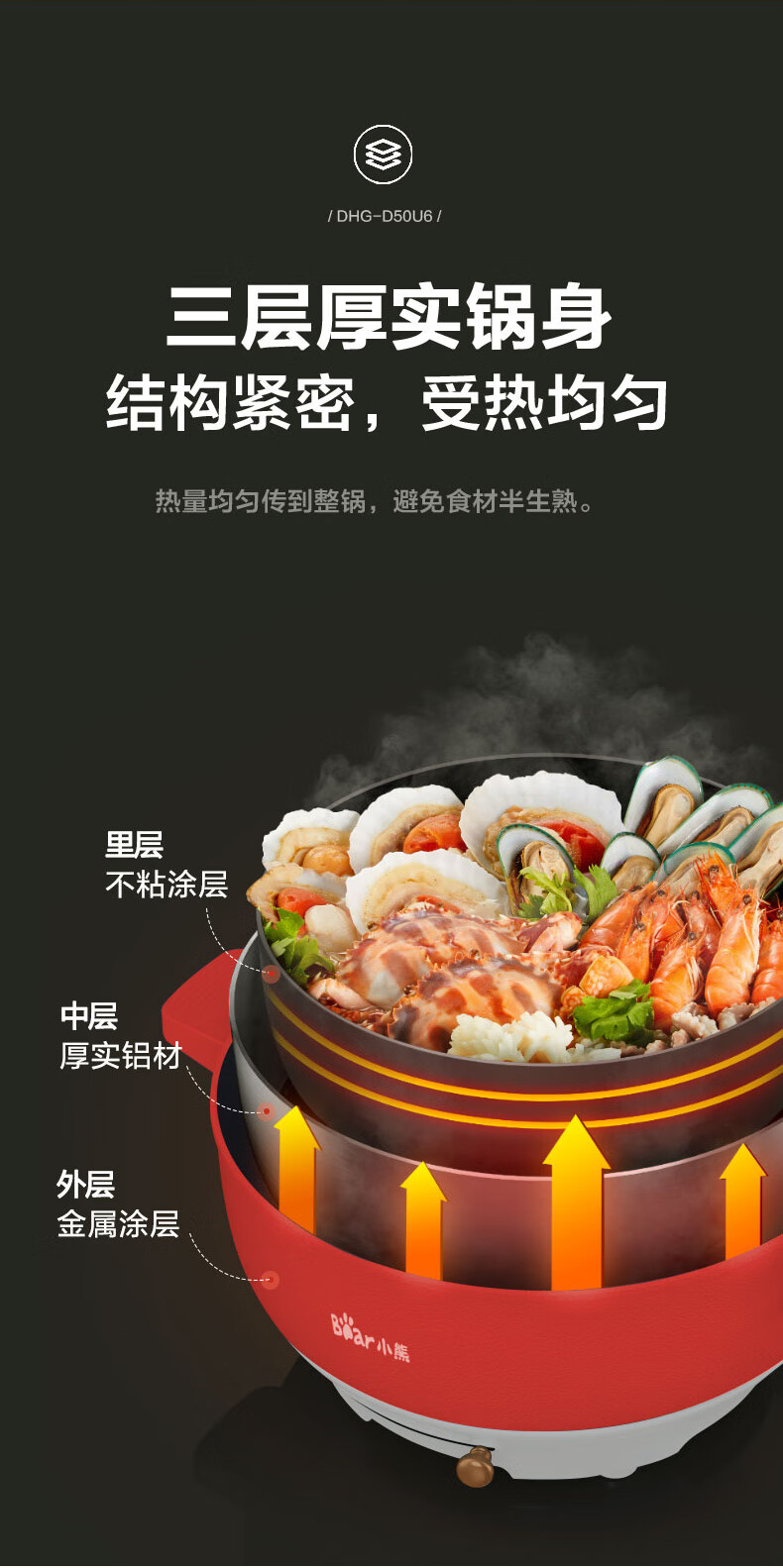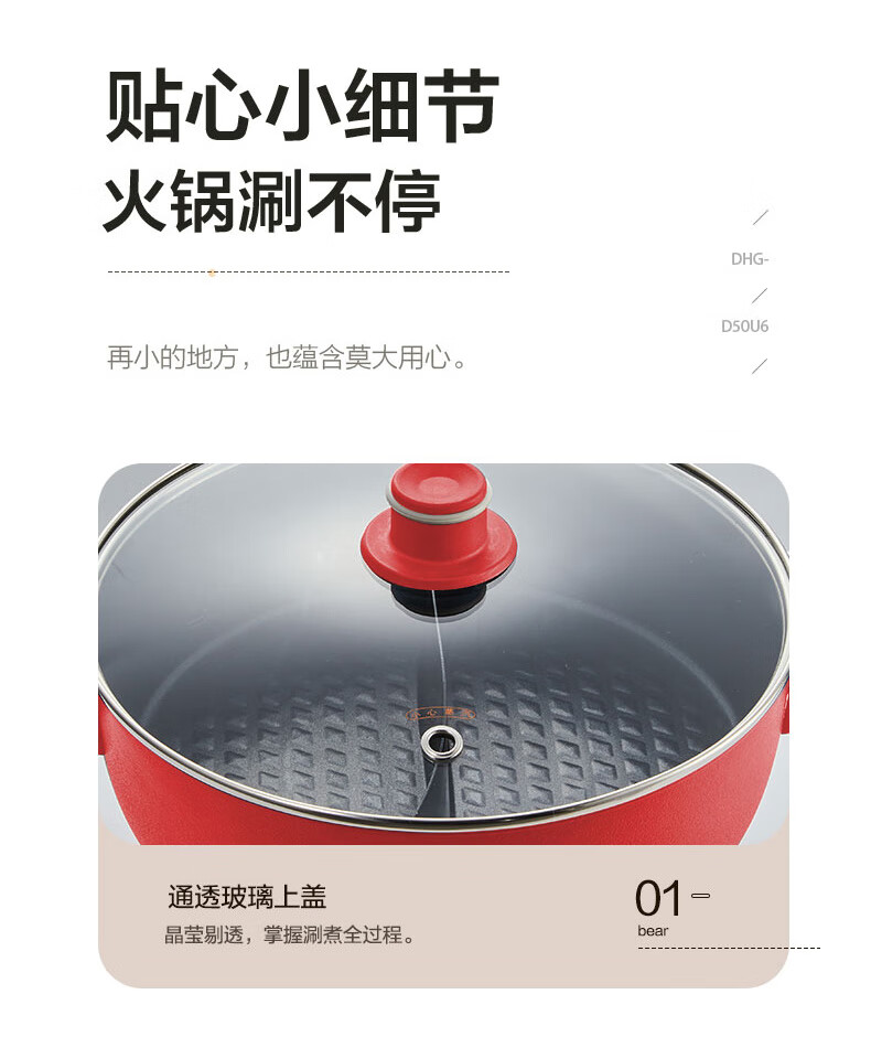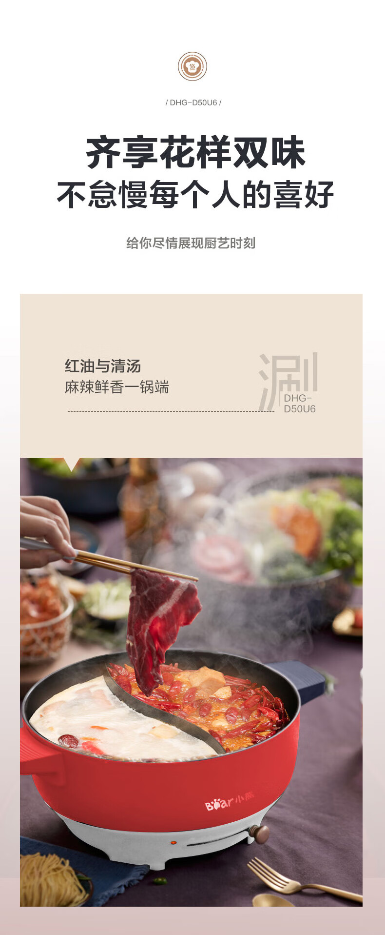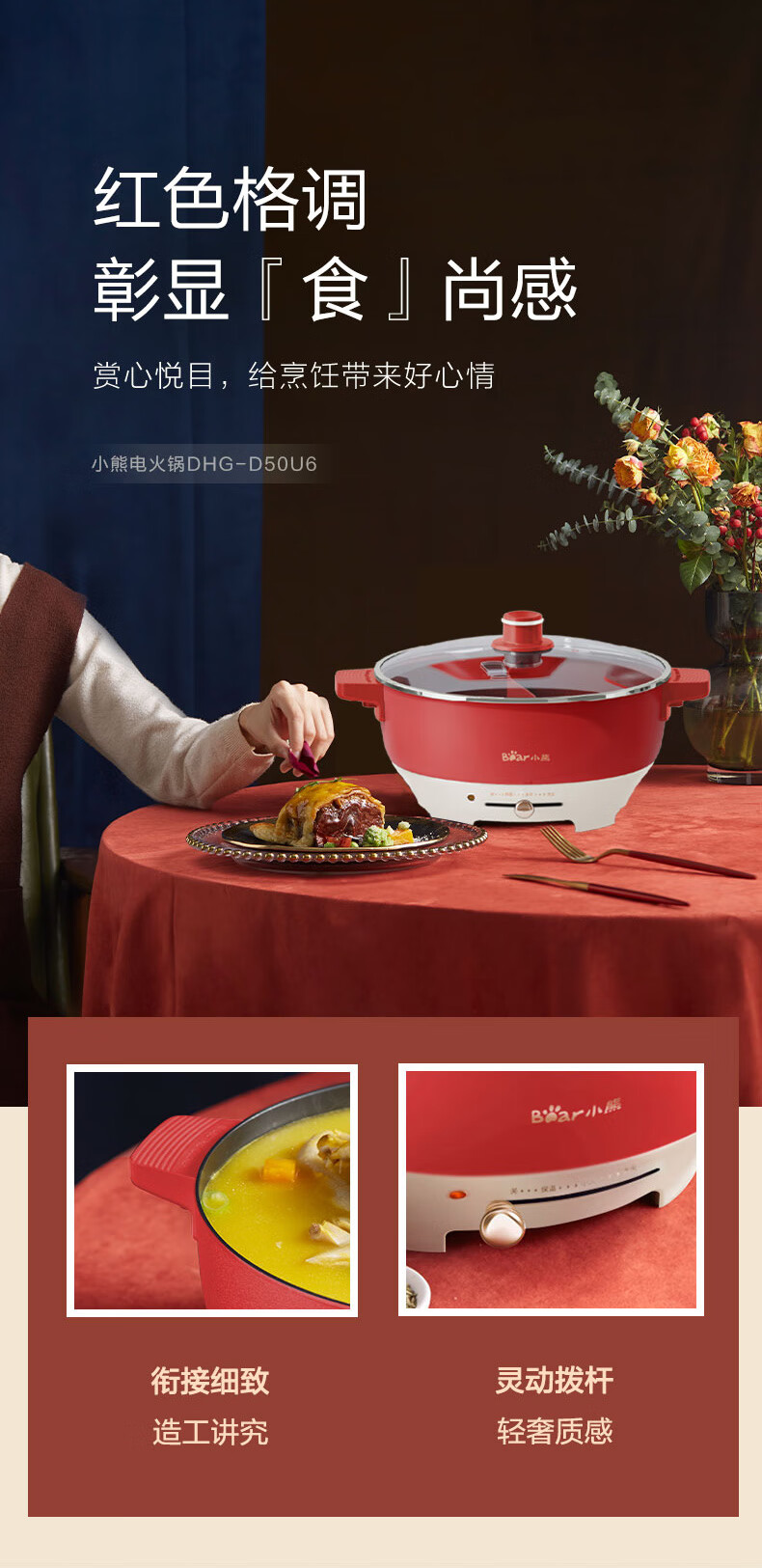 小熊(Bear) 电火锅 DHG-D50U6(单位:台) 红色