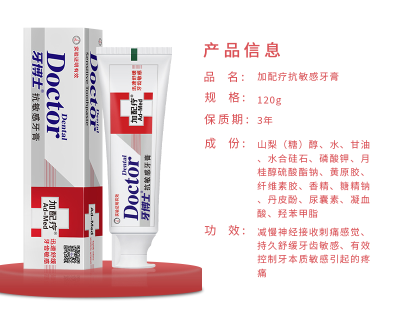牙博士加配疗 白色 抗敏感牙膏120g*1+牙刷*2