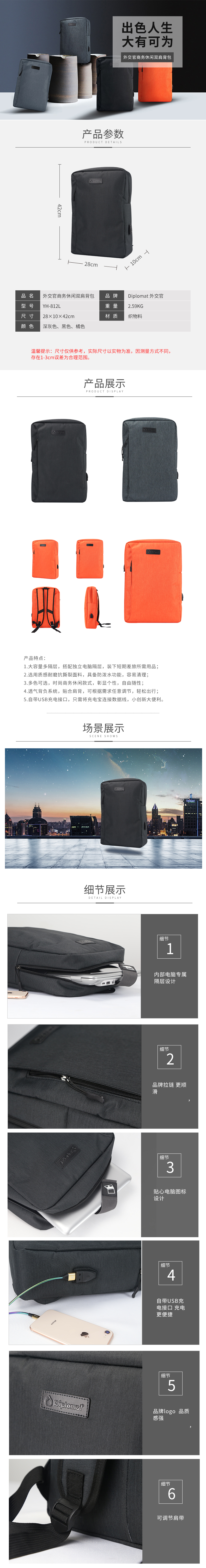 Diplomat外交官时尚休闲双肩包YH-812L-124 (单位:个) 深灰色
