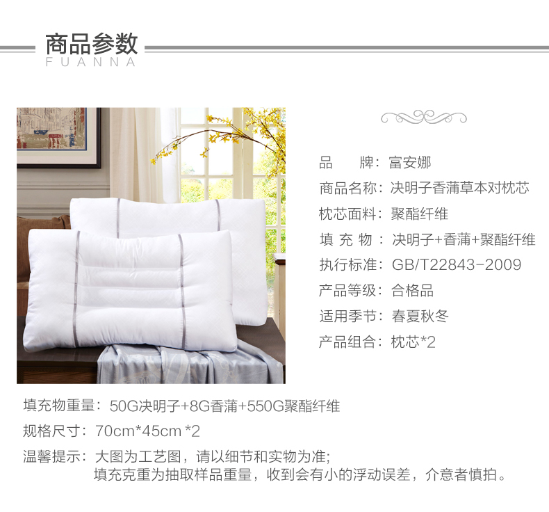 富安娜决明子香蒲草本对枕芯70*45cm(单位:对) 决明子香蒲草本对枕