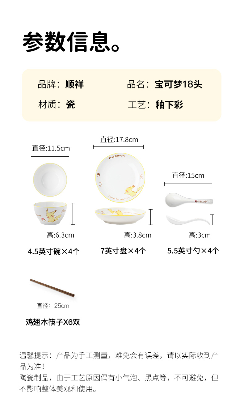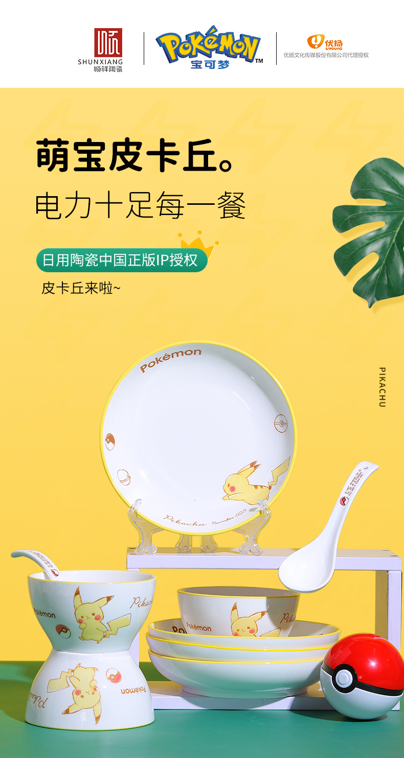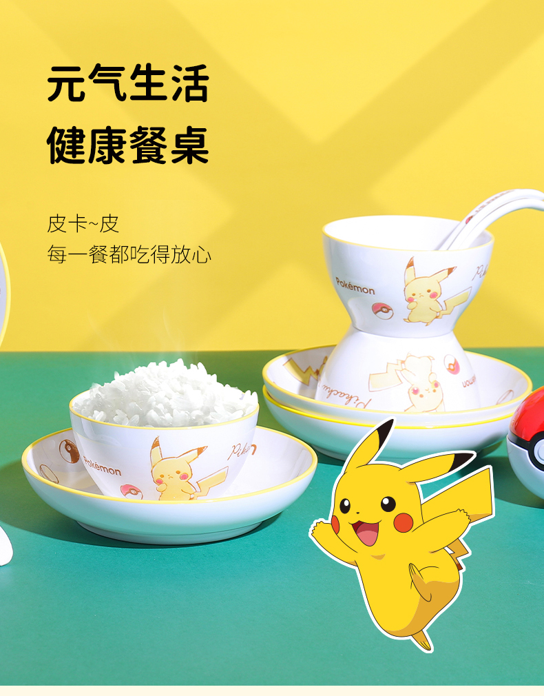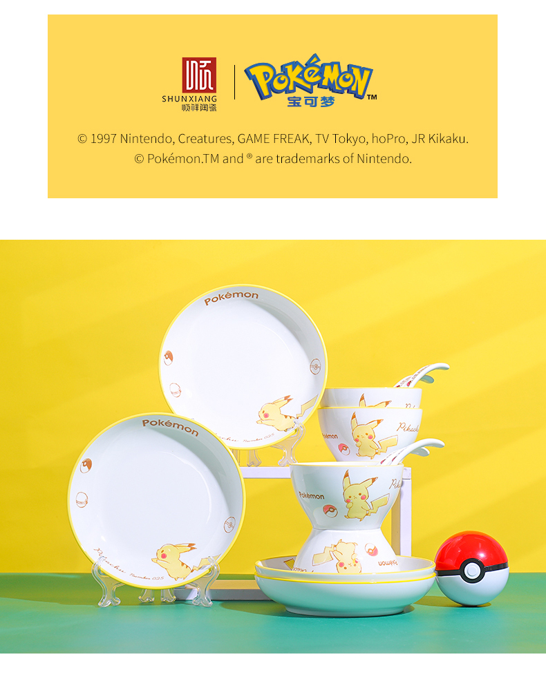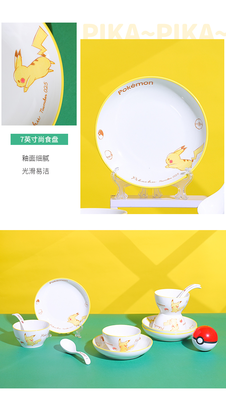 顺祥陶瓷餐具宝可梦皮卡丘系列18头套装 鹅仔黄 鹅仔黄