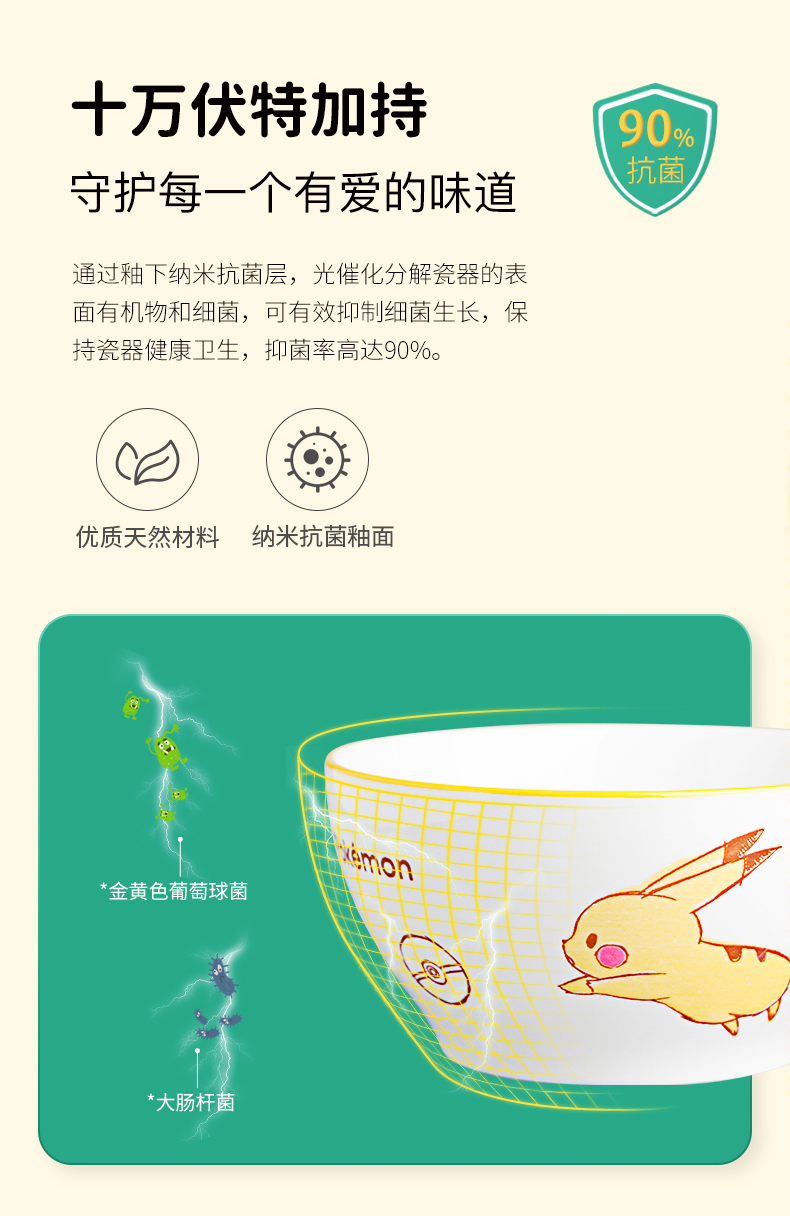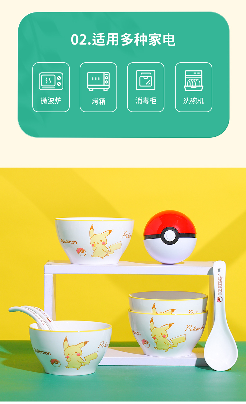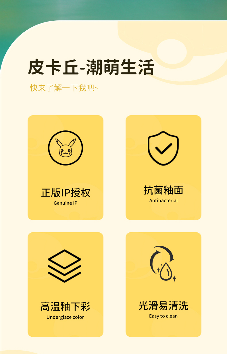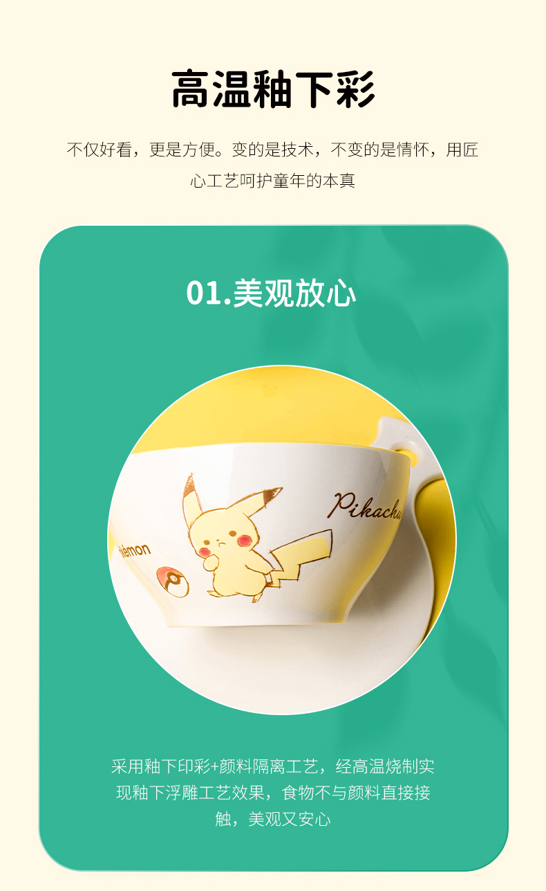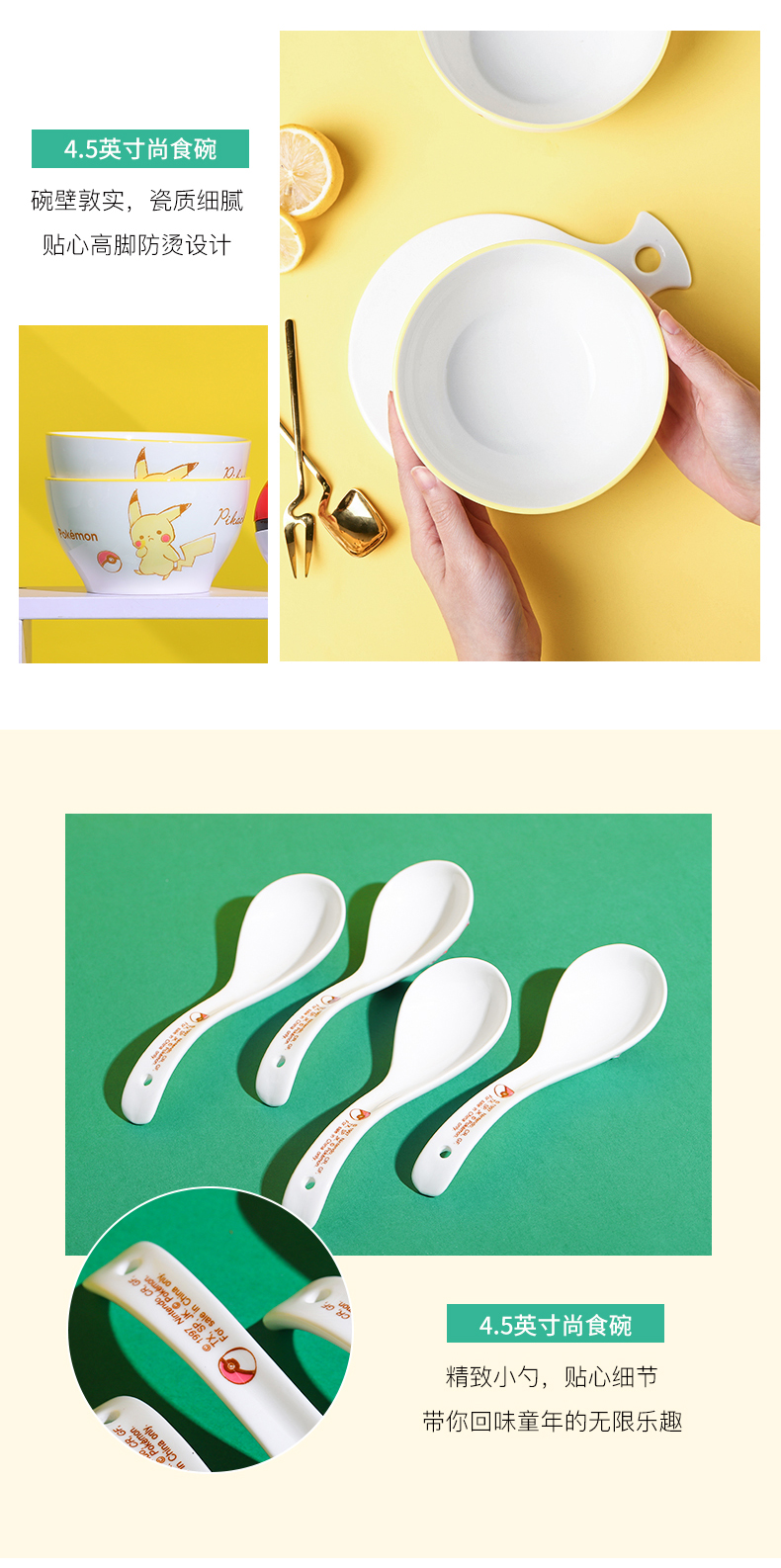 顺祥陶瓷餐具宝可梦皮卡丘系列18头套装 鹅仔黄 鹅仔黄