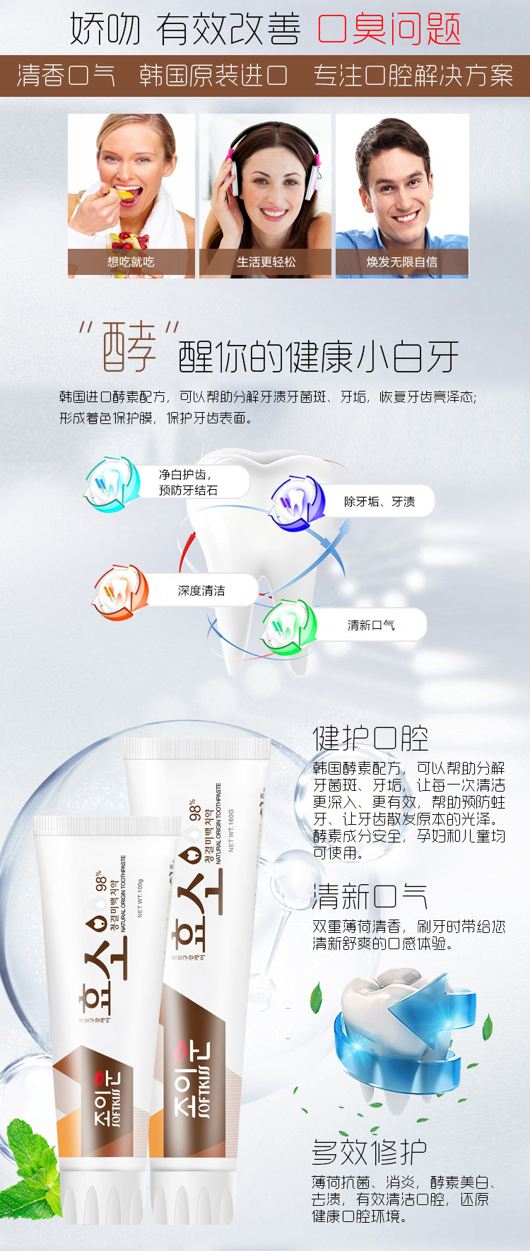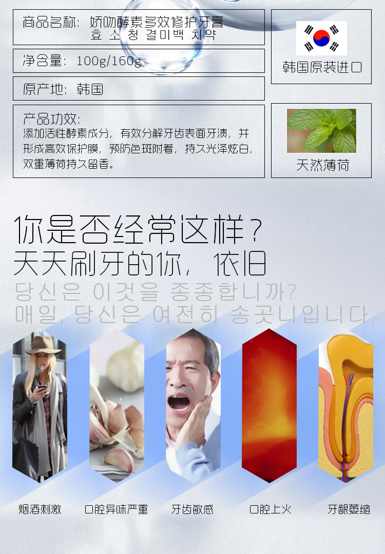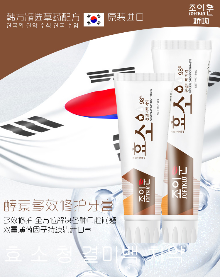 韩国原装进口娇吻酵素多效修护牙膏160g*3(新疆、西藏不发) 香槟色 香槟色