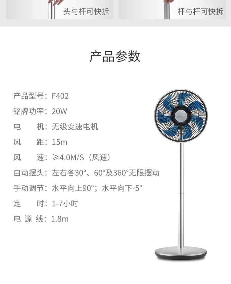 莱克(LEXY)空气调节扇 F402 20W(单位:台) 银色