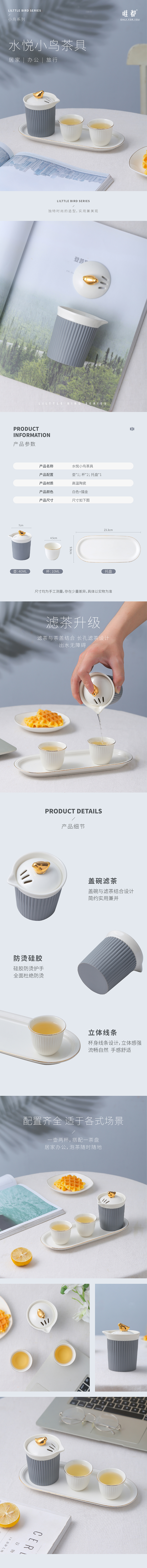 唯都 水悦小鸟茶具W-S41(单位:套) 灰橙色