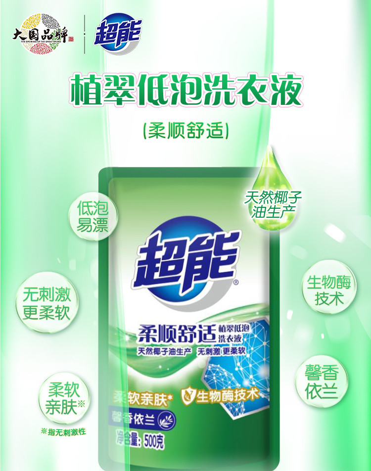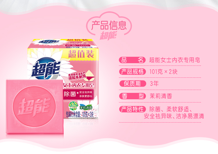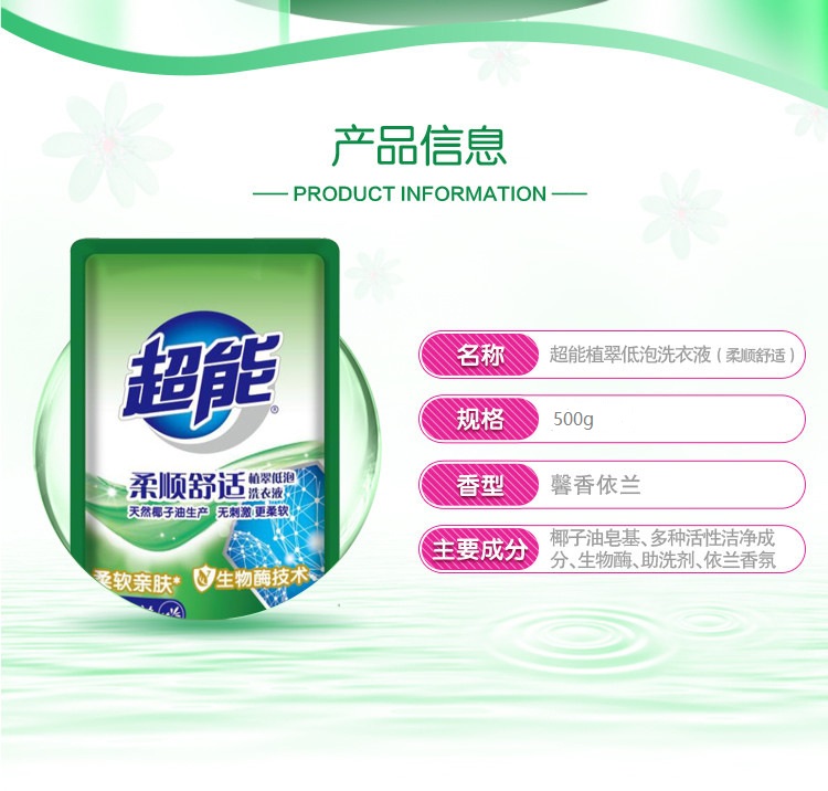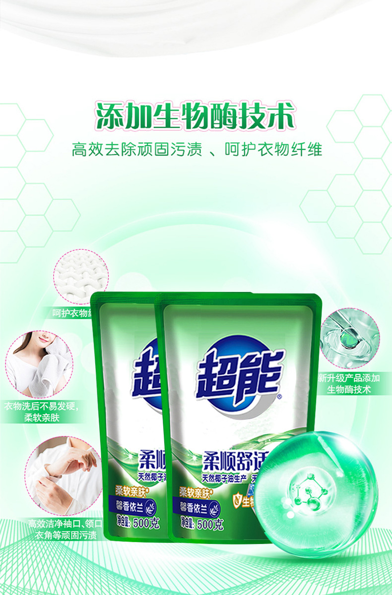 超能洗衣套组4件套1kg+500g*2袋+101g*2(洗衣液2kg+内衣皂202g)/套 图片色