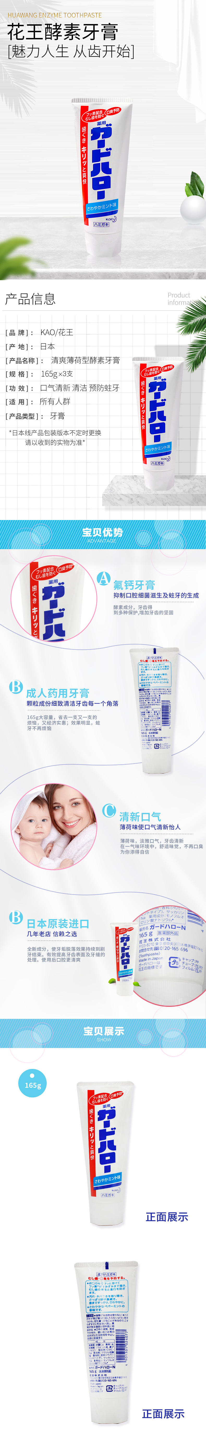 KAO/花王牙酵素美白牙膏165g 薄荷味三支装 KAO/花王牙酵素美白牙膏165g*3