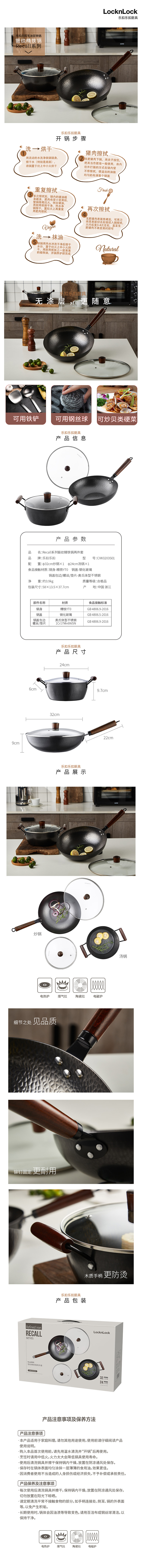乐扣乐扣(LOCK&LOCK)Recall系列锻纹精铁锅两件套CIW3203S01(炒锅+汤锅) 黑色