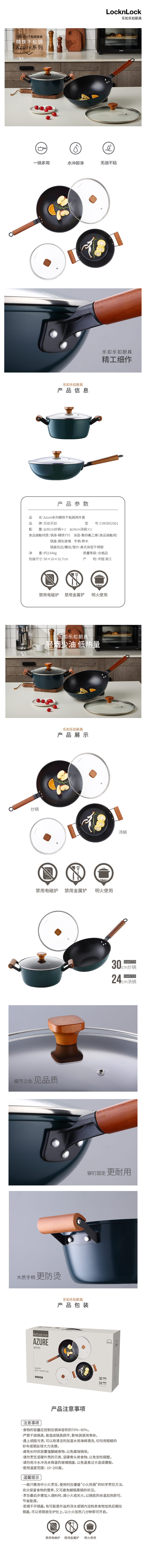 乐扣乐扣(LOCK&LOCK)Azure系列精铁不粘锅两件套CIW3002S01 黑色