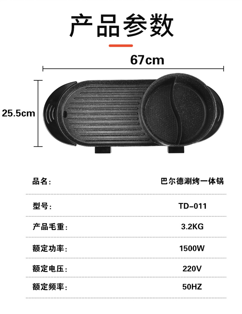 巴尔德涮烤一体锅TD-011(单位:套) 曜石黑