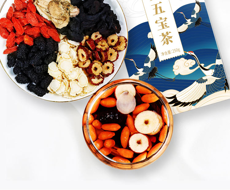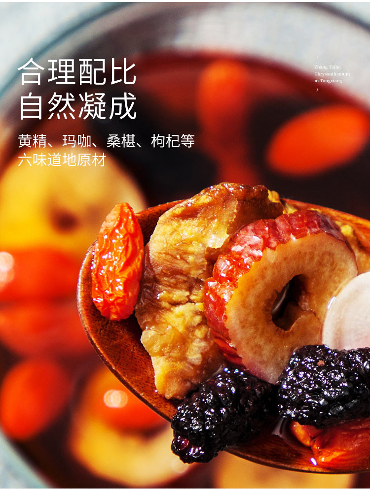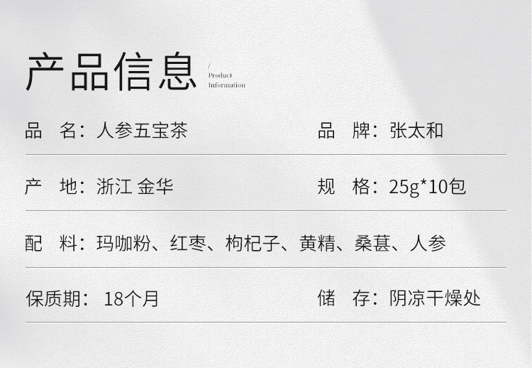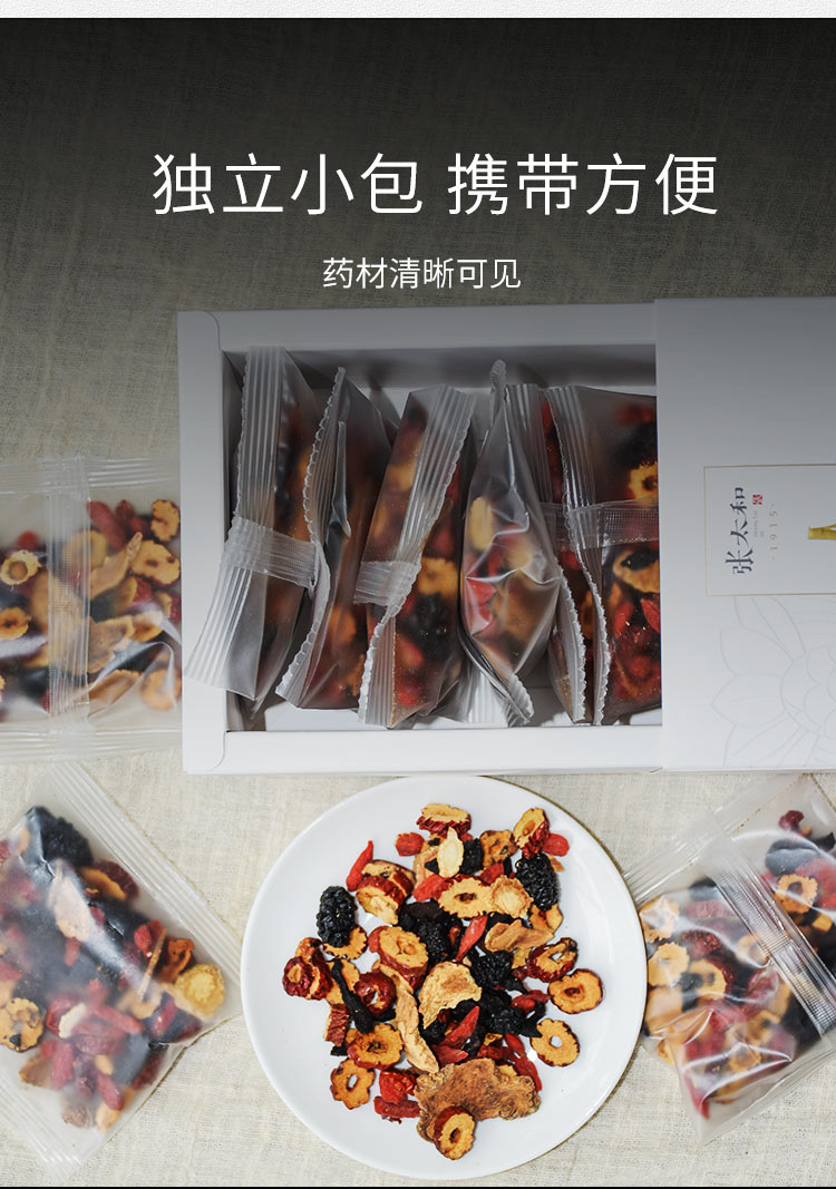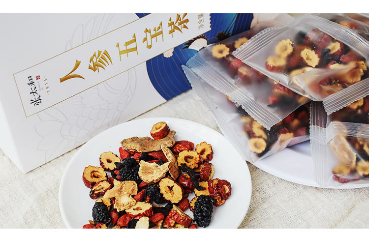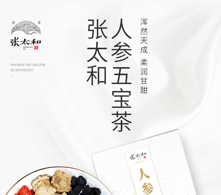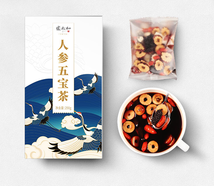 张太和始创于1915 人参五宝茶红枣黑玛咖黄精枸杞子桑葚人参茶男肾茶补茶男性八宝茶配方茶男人养生茶 250g 白色
