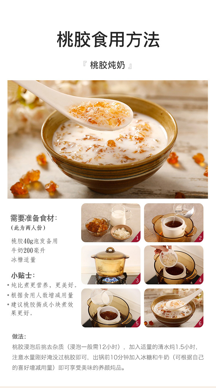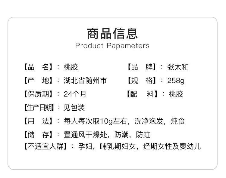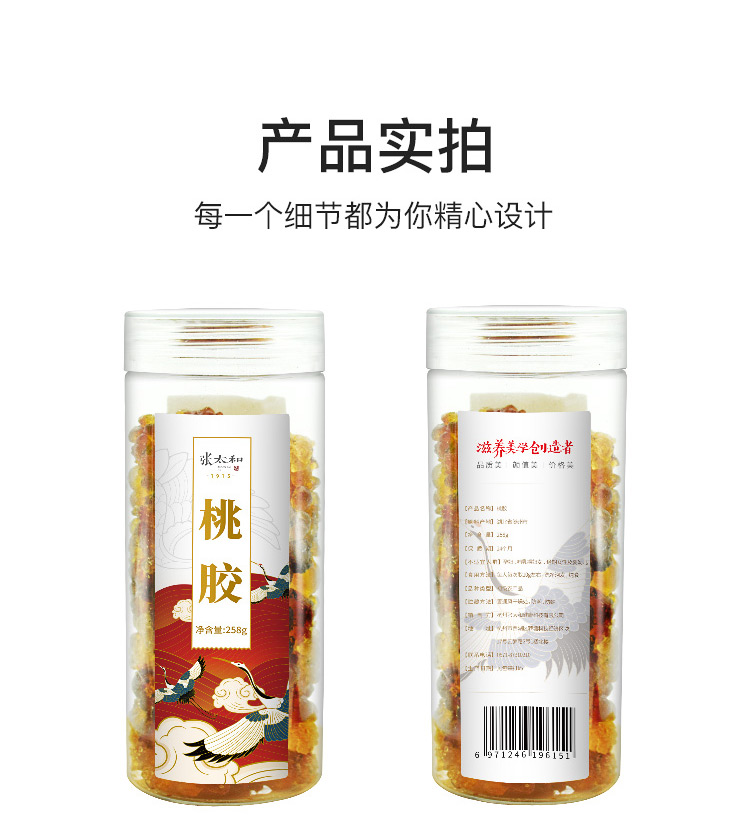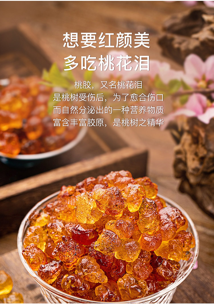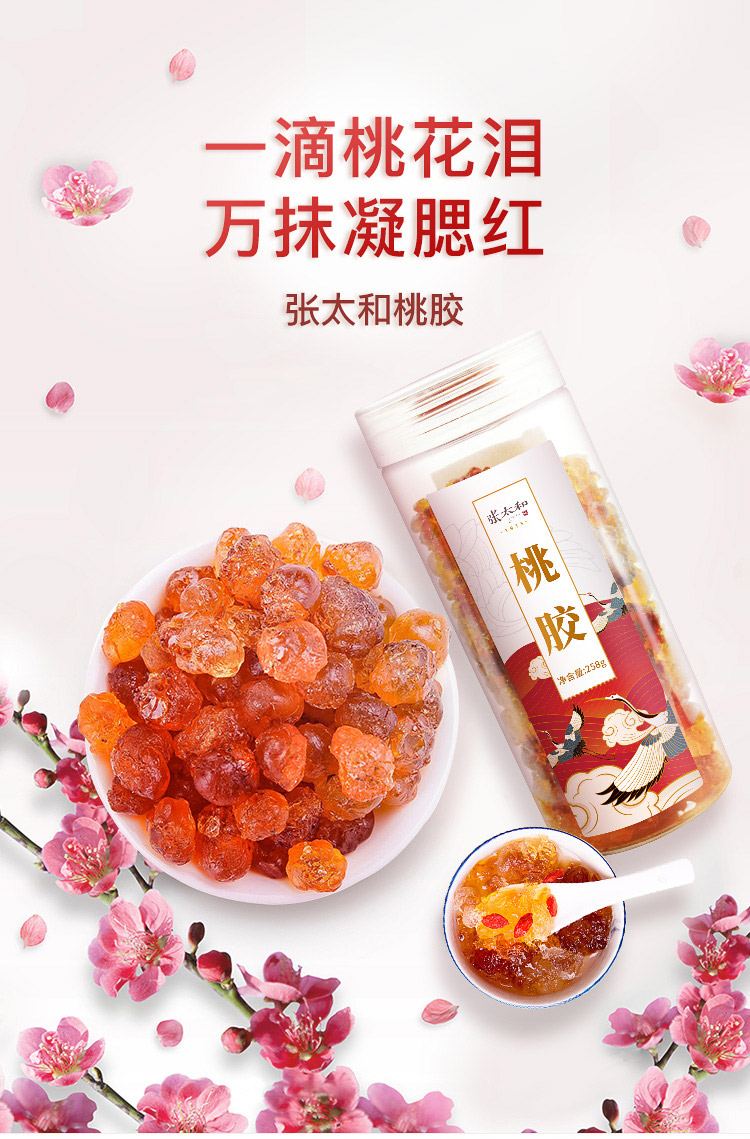 张太和始创于1915 桃胶258g/瓶 装精选天然桃花泪 可搭配雪莲子皂角米 滋补养生煲汤 258g*1罐 白色