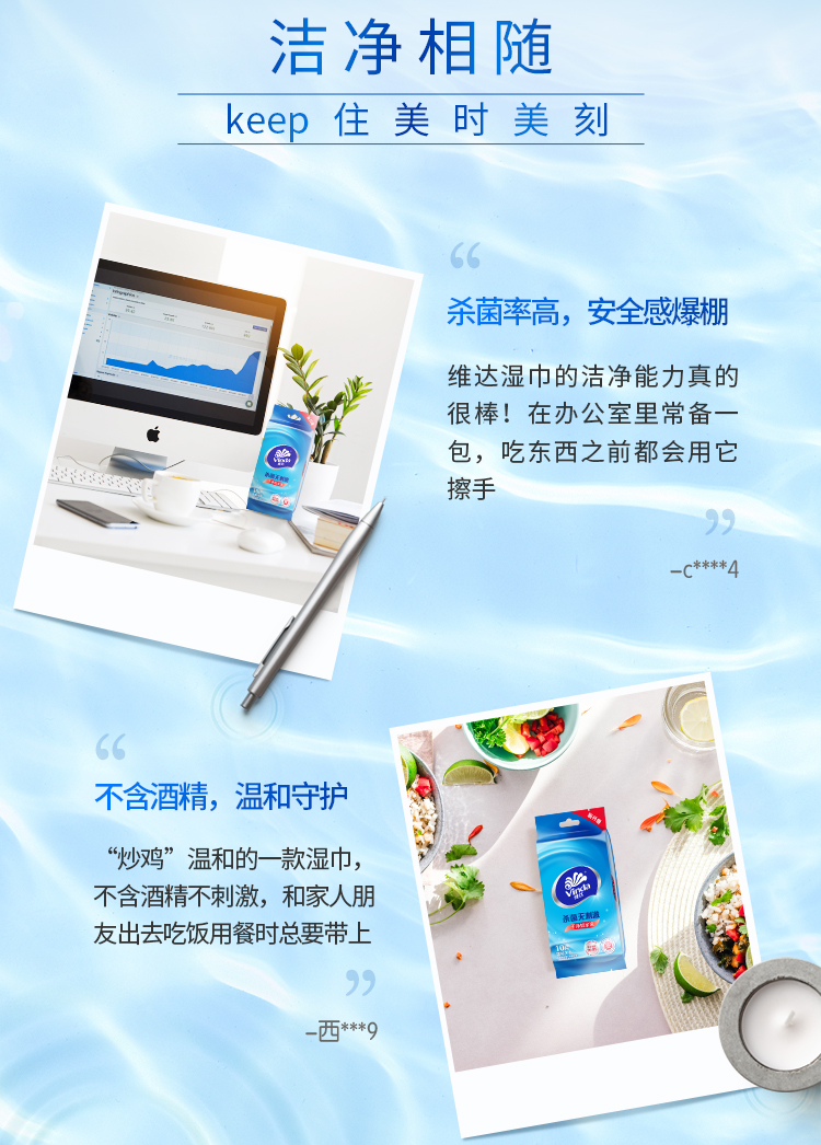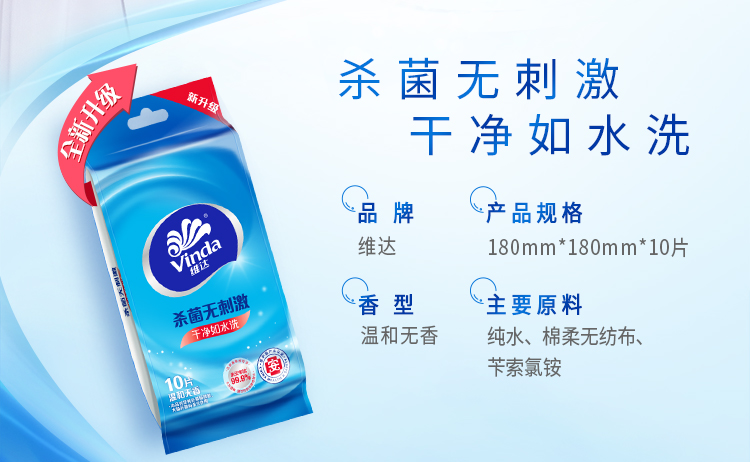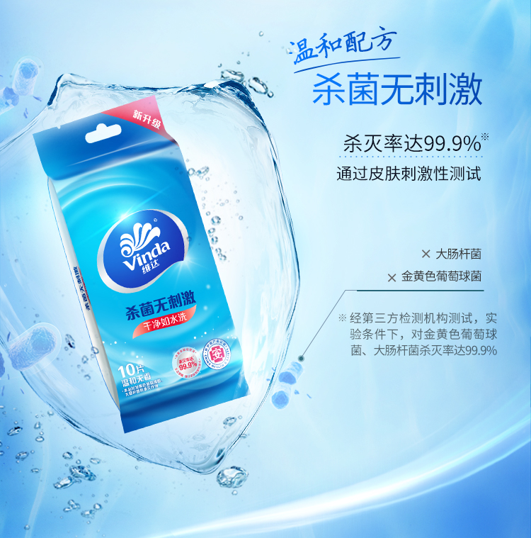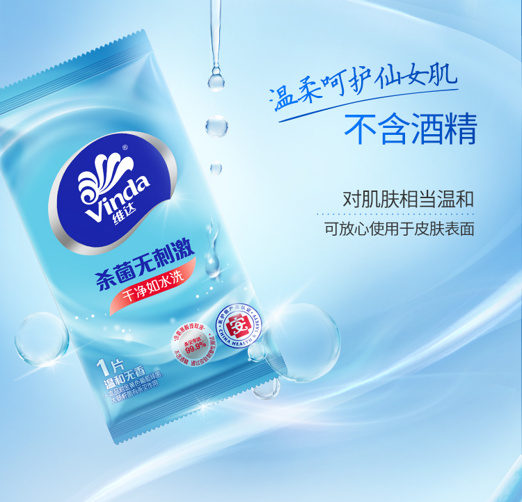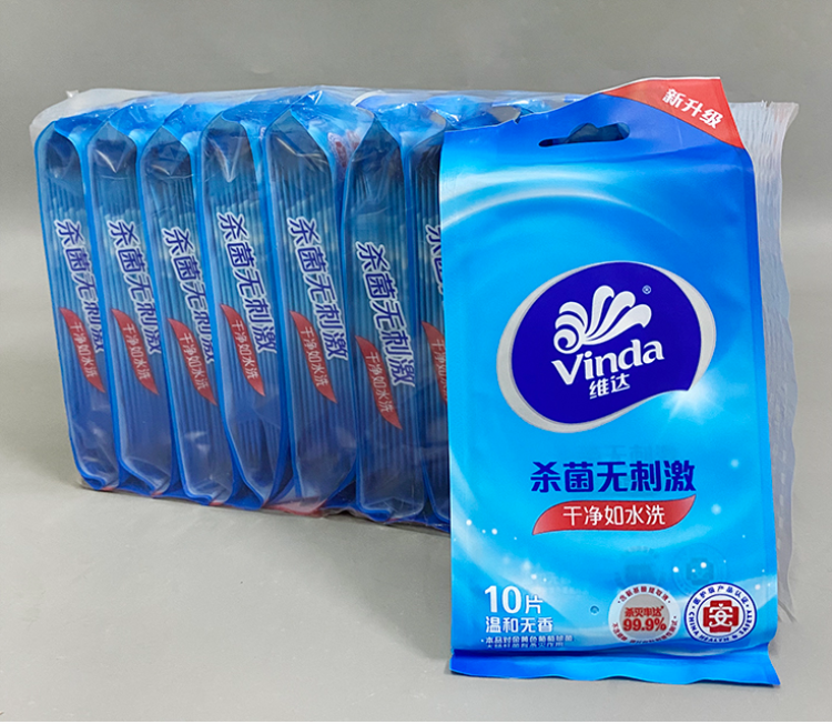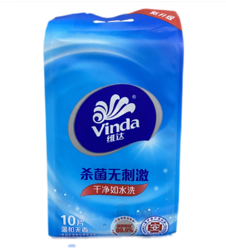 维达(Vinda)杀菌湿巾·温和无香10片独立装/包×10包(共100片) 宝石蓝