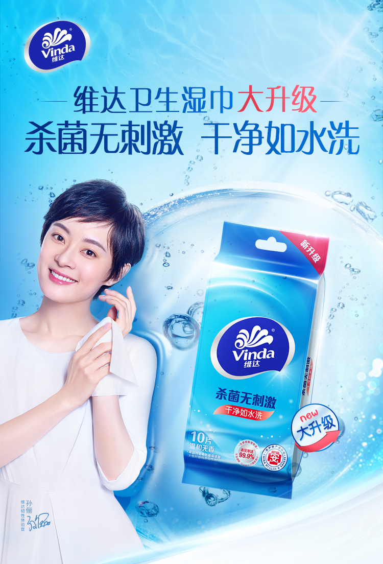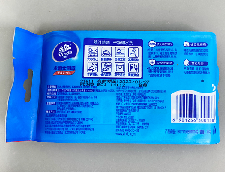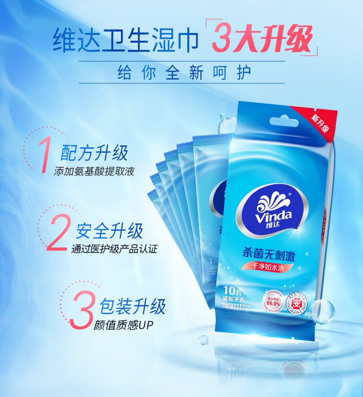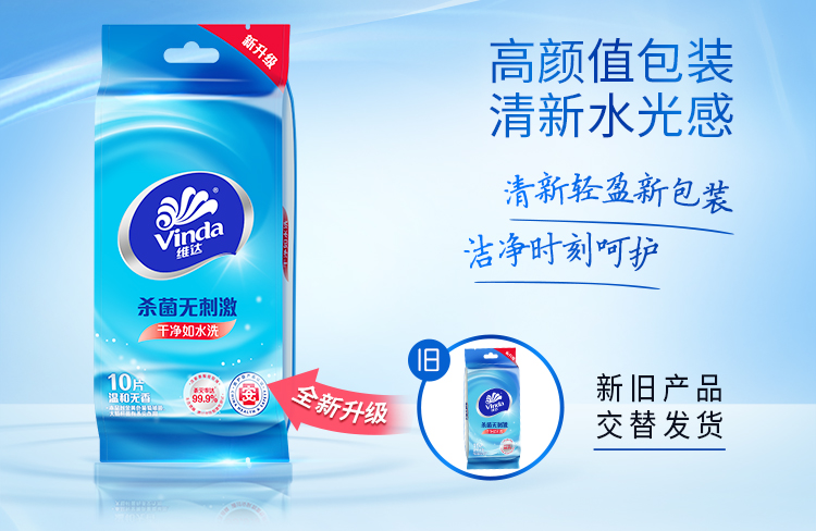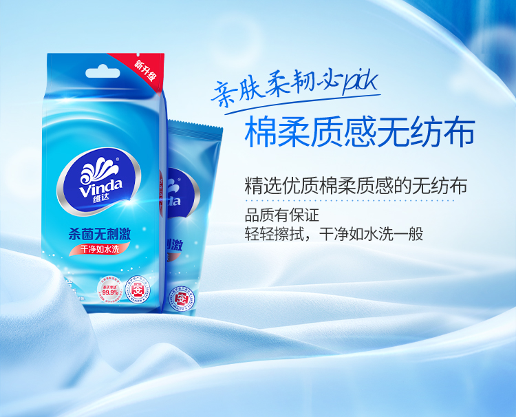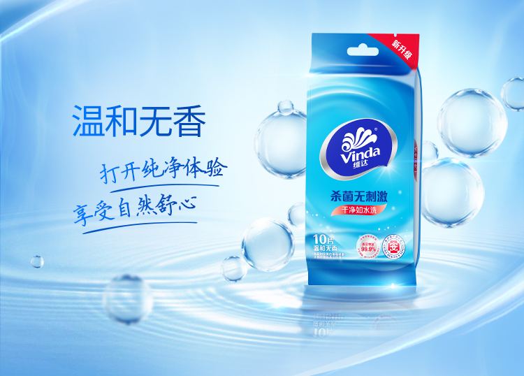 维达(Vinda)杀菌湿巾·温和无香10片独立装/包×10包(共100片) 宝石蓝