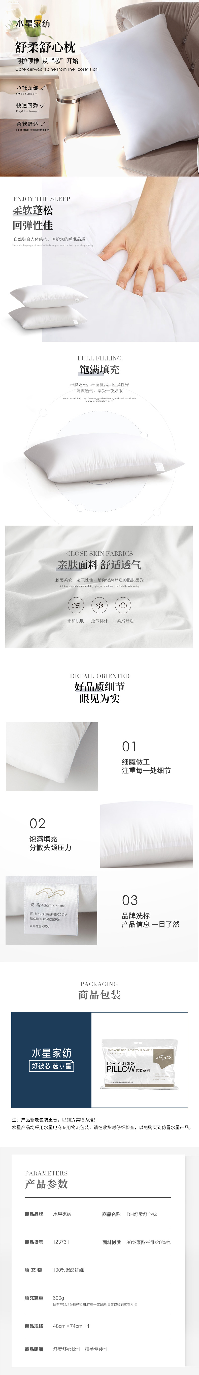 水星家纺舒柔舒心枕74*48cm 拿铁色