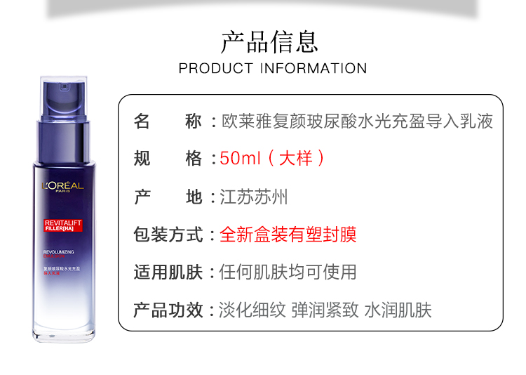 欧莱雅复颜玻尿酸套装(眼霜30ml+乳液50ml+晶露65ml)(6941546946626)