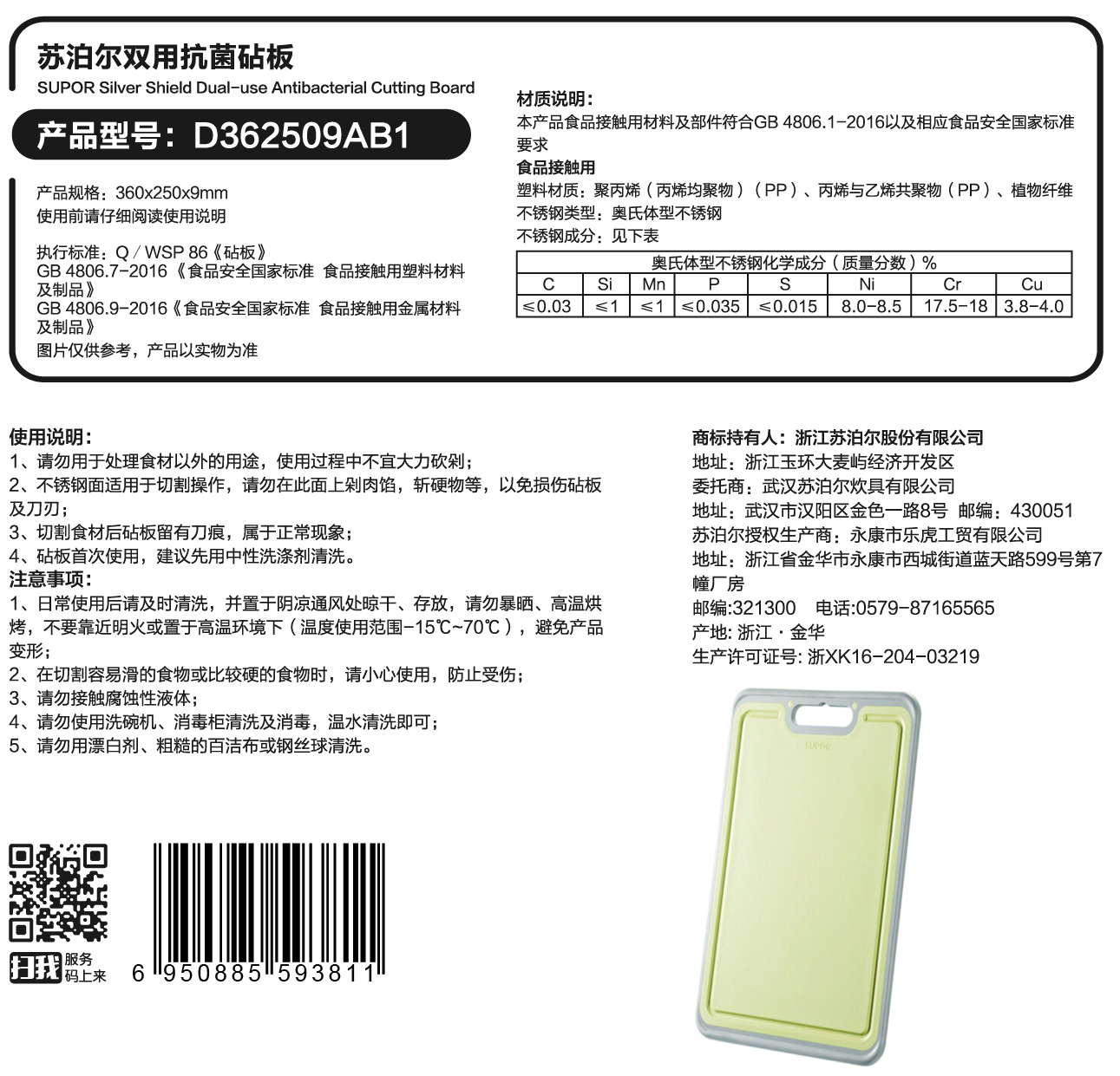 苏泊尔双用抗菌砧板/D362509AB1 无香型