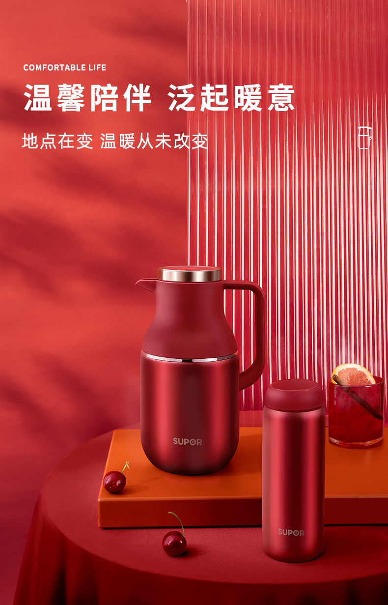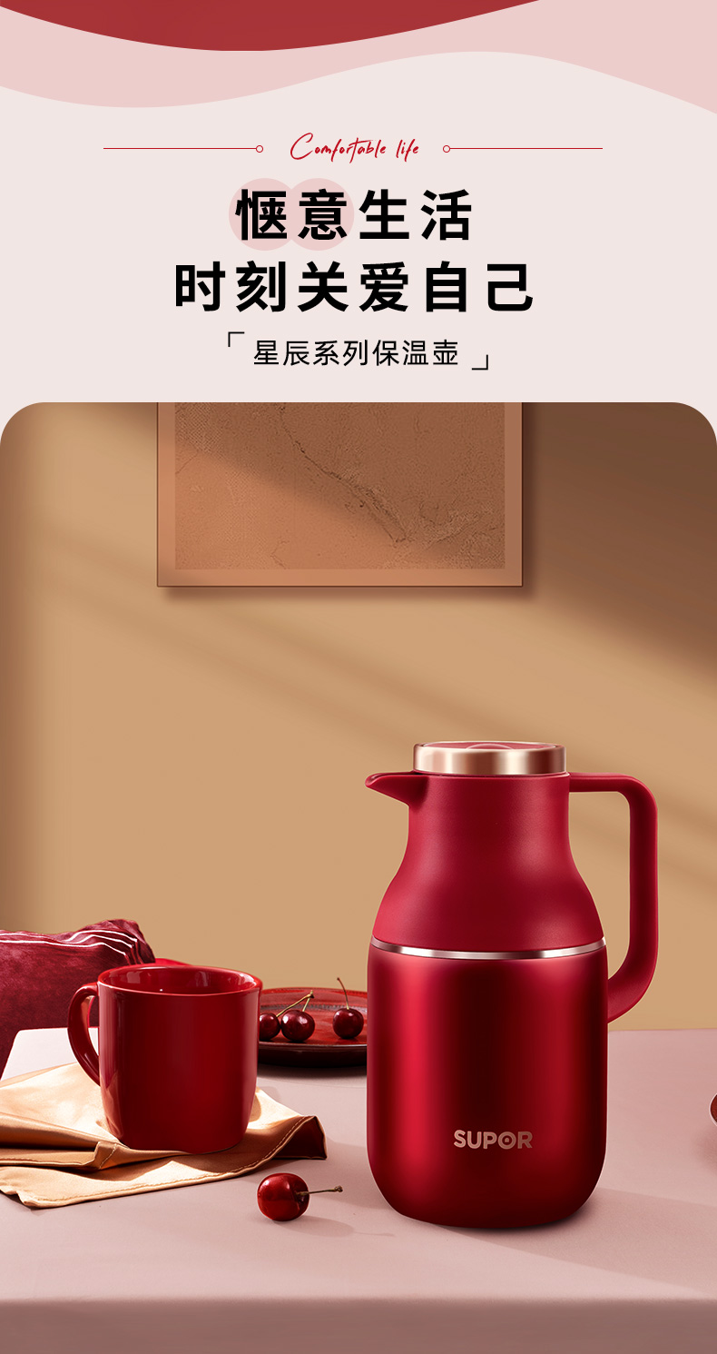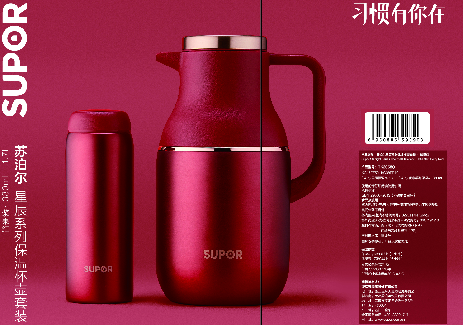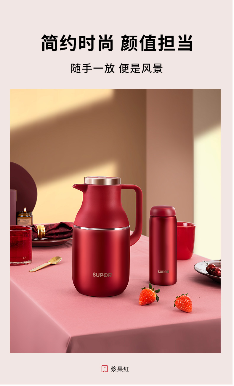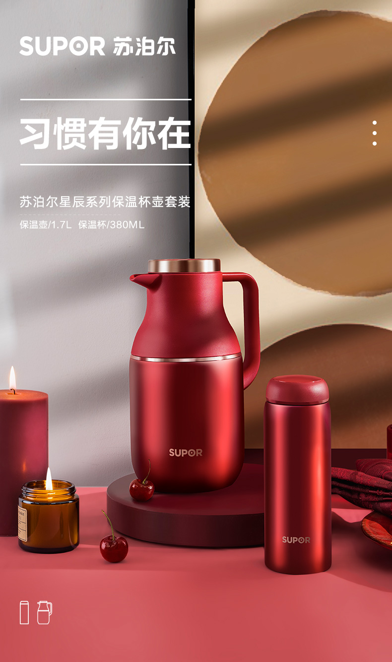 苏泊尔(SUPOR)星辰系列保温杯壶套装 380ML真空保温杯+1.7L保温壶 TK2058Q(单位:套)浆果红 红色