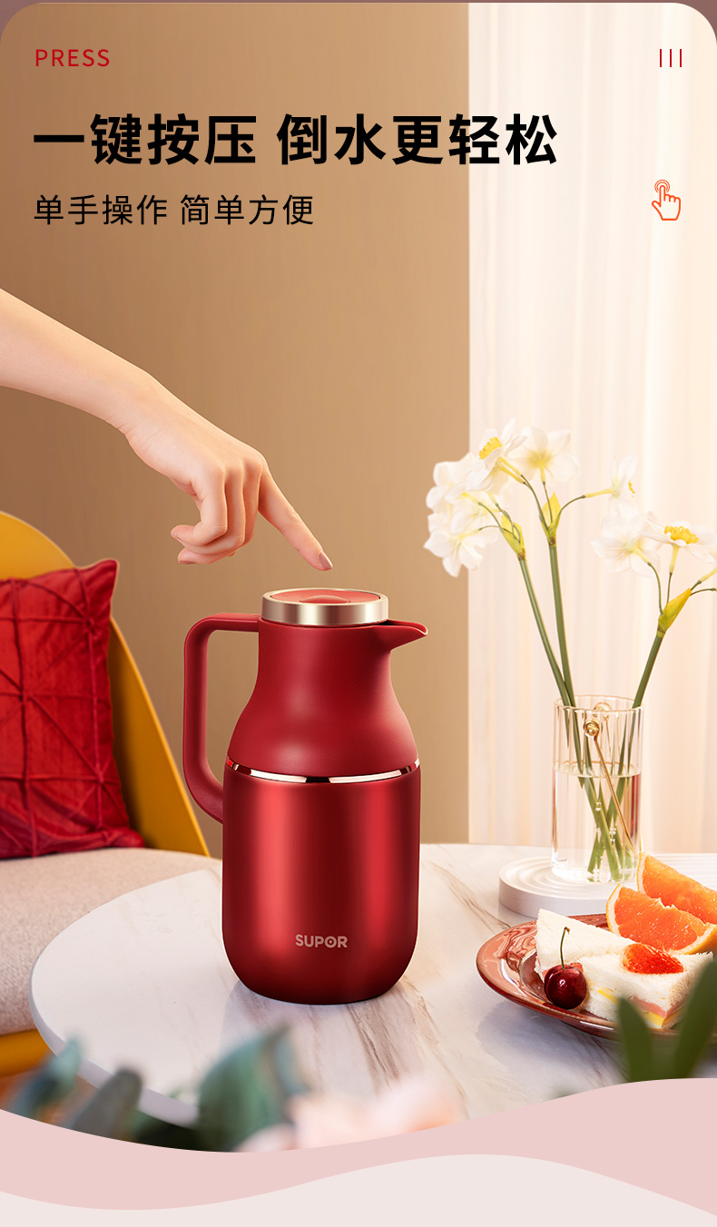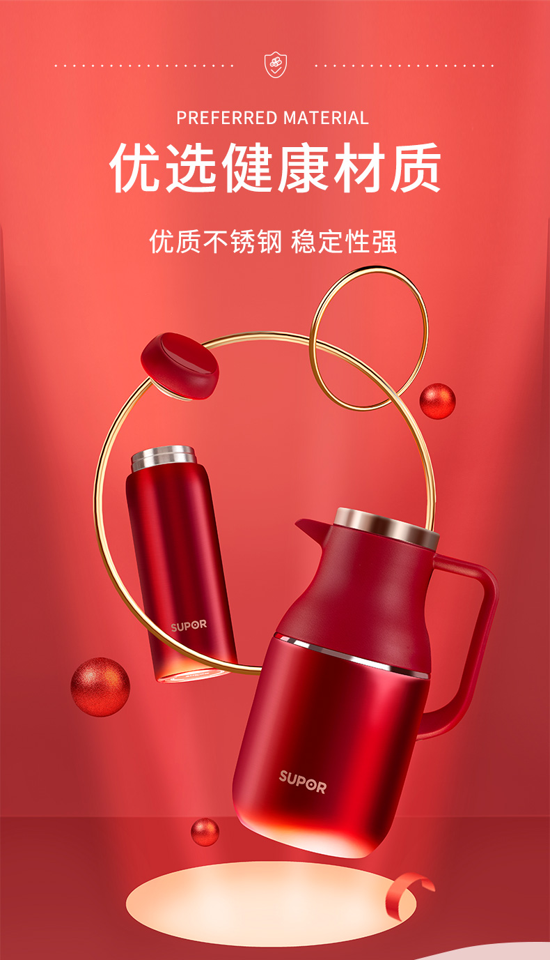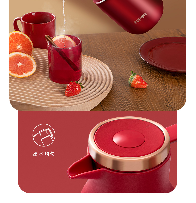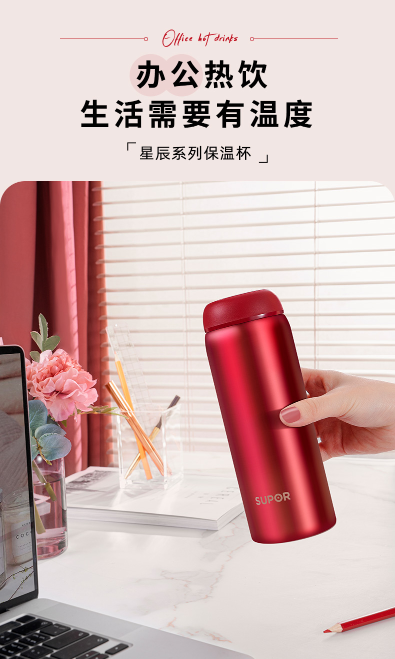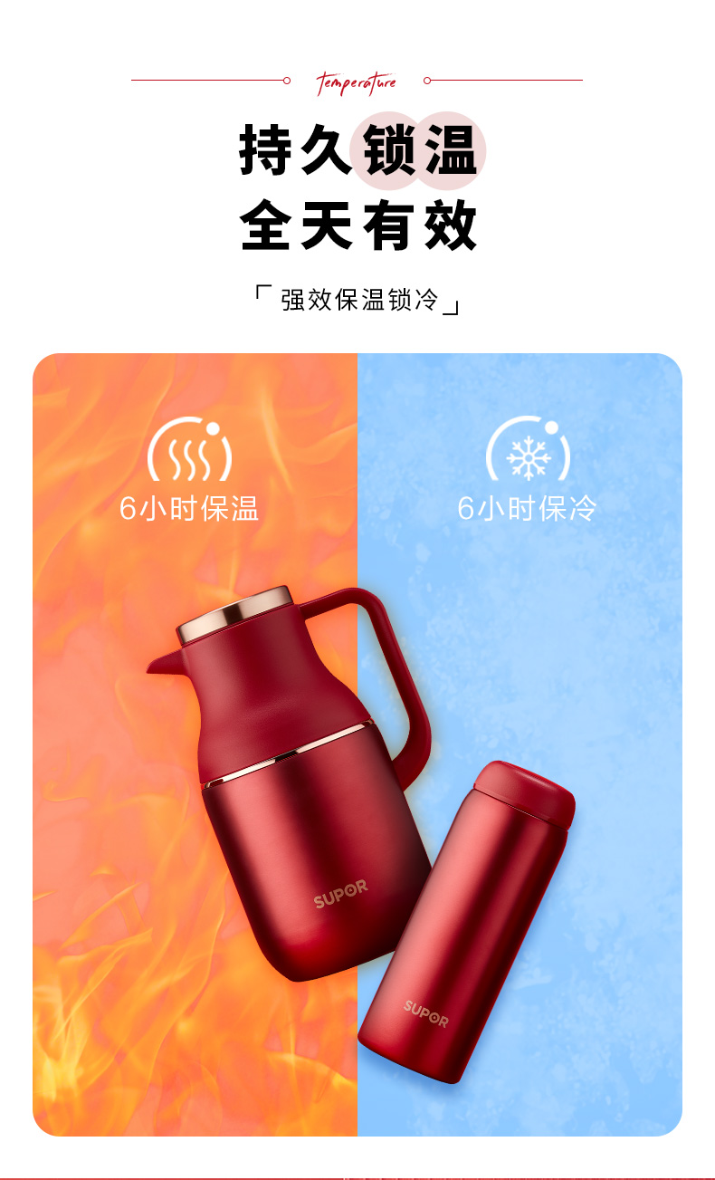 苏泊尔(SUPOR)星辰系列保温杯壶套装 380ML真空保温杯+1.7L保温壶 TK2058Q(单位:套)浆果红 红色