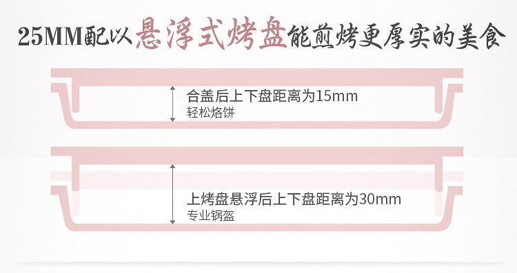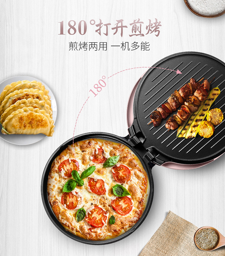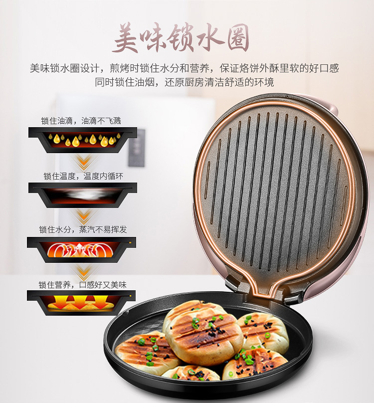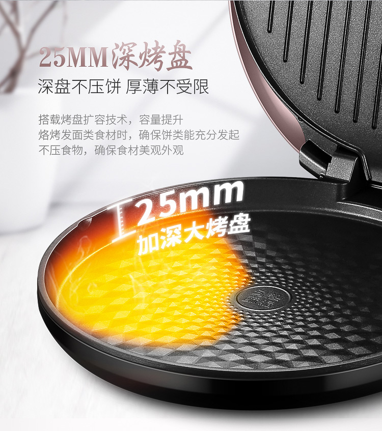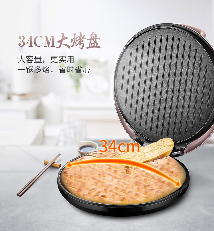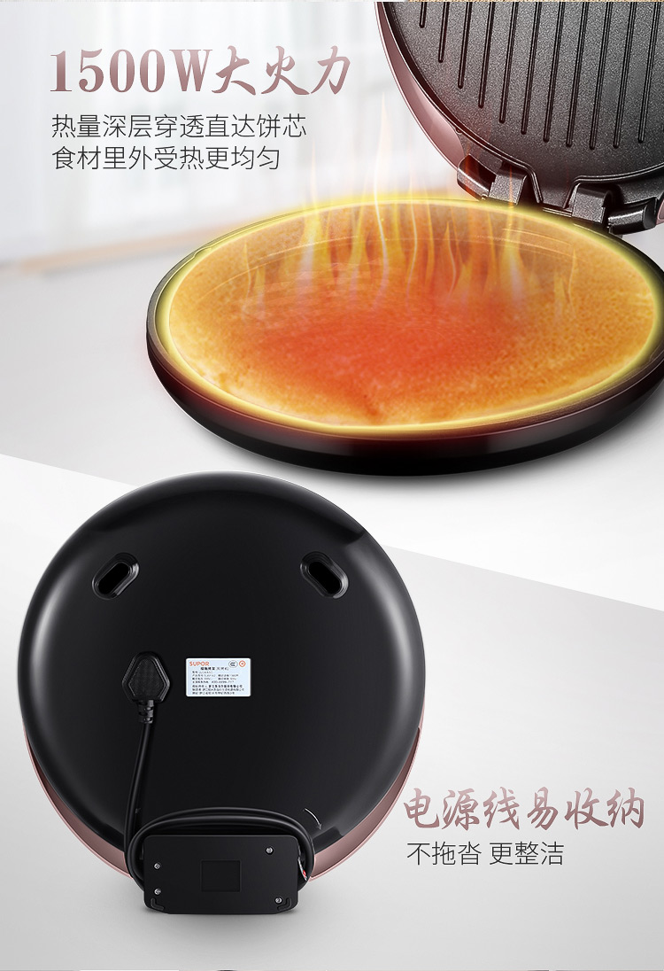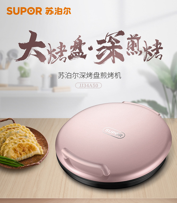 苏泊尔(SUPOR)JJ34A50 家用双面加热煎烤机加深烤盘1500W电饼铛 台 玫瑰金