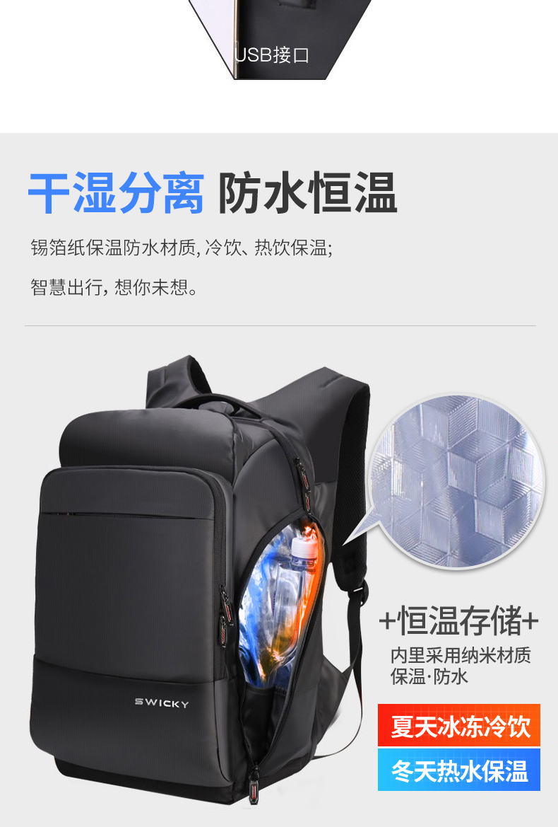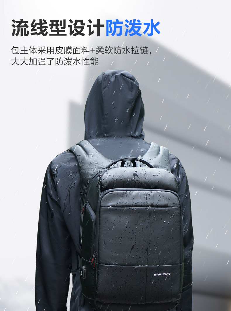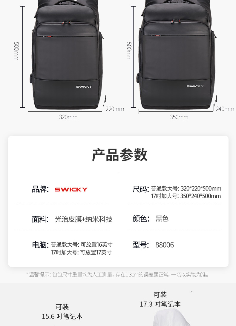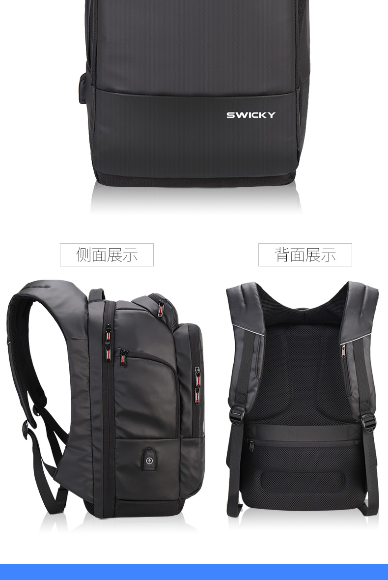 SWICKY 多功能大容量 商务双肩包 88006普通大号15.6寸 黑色