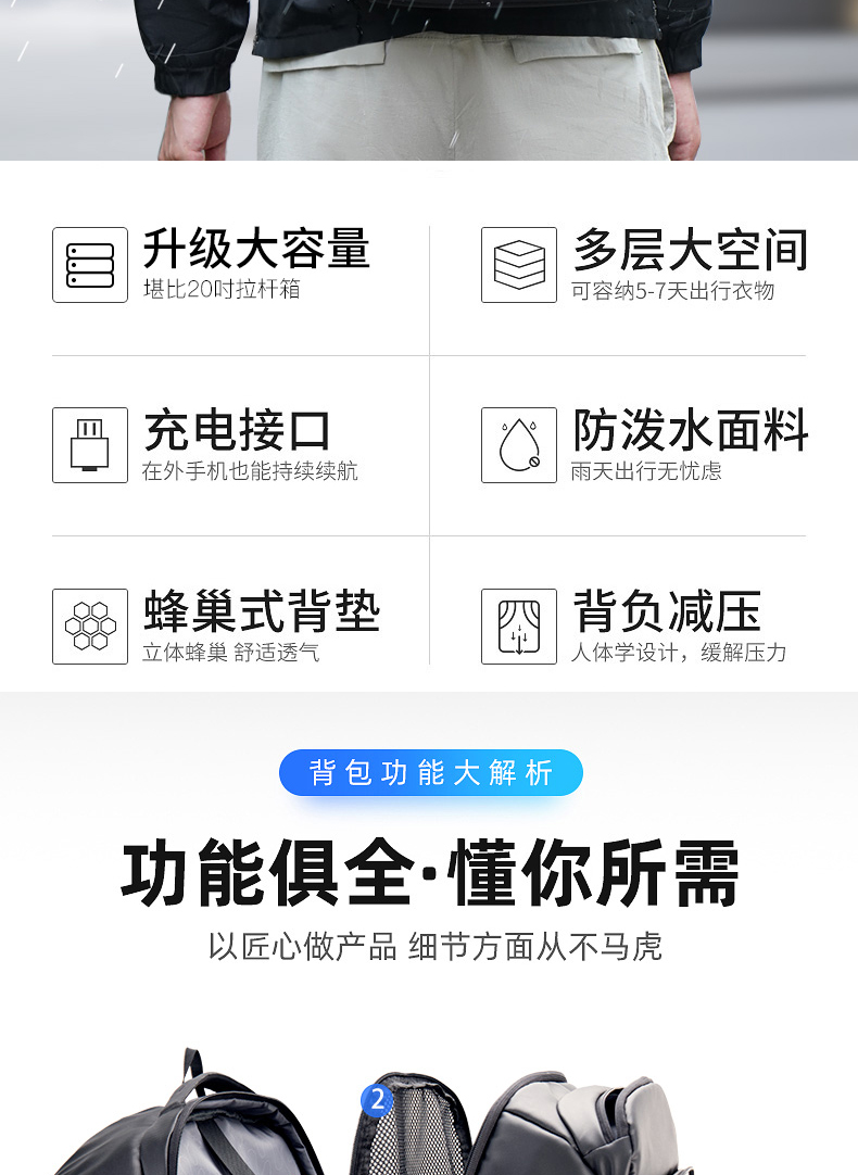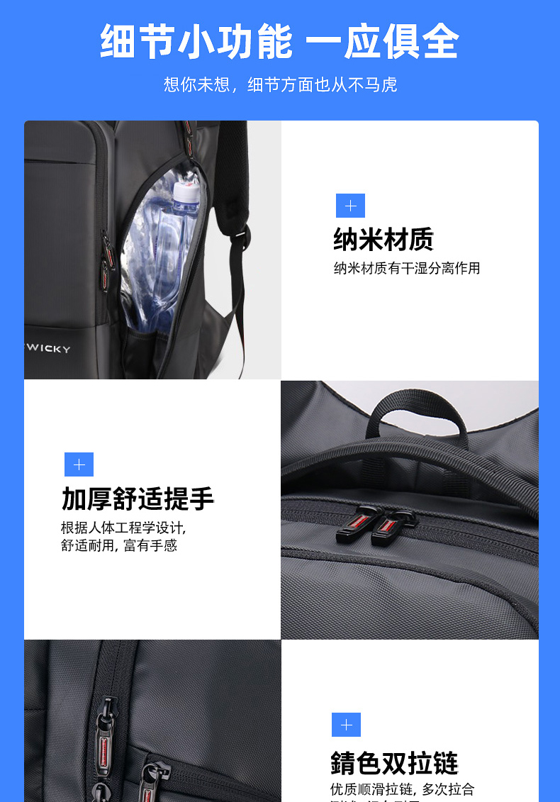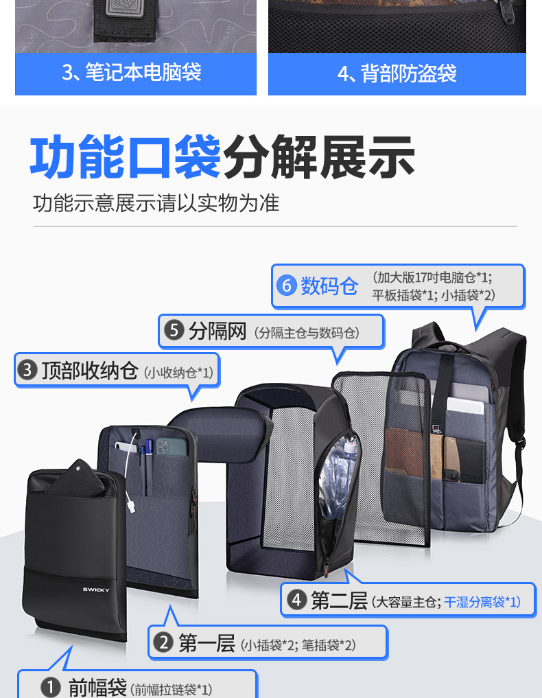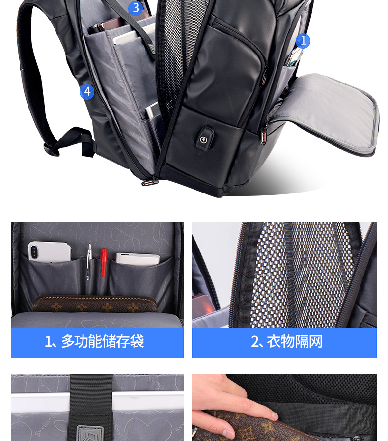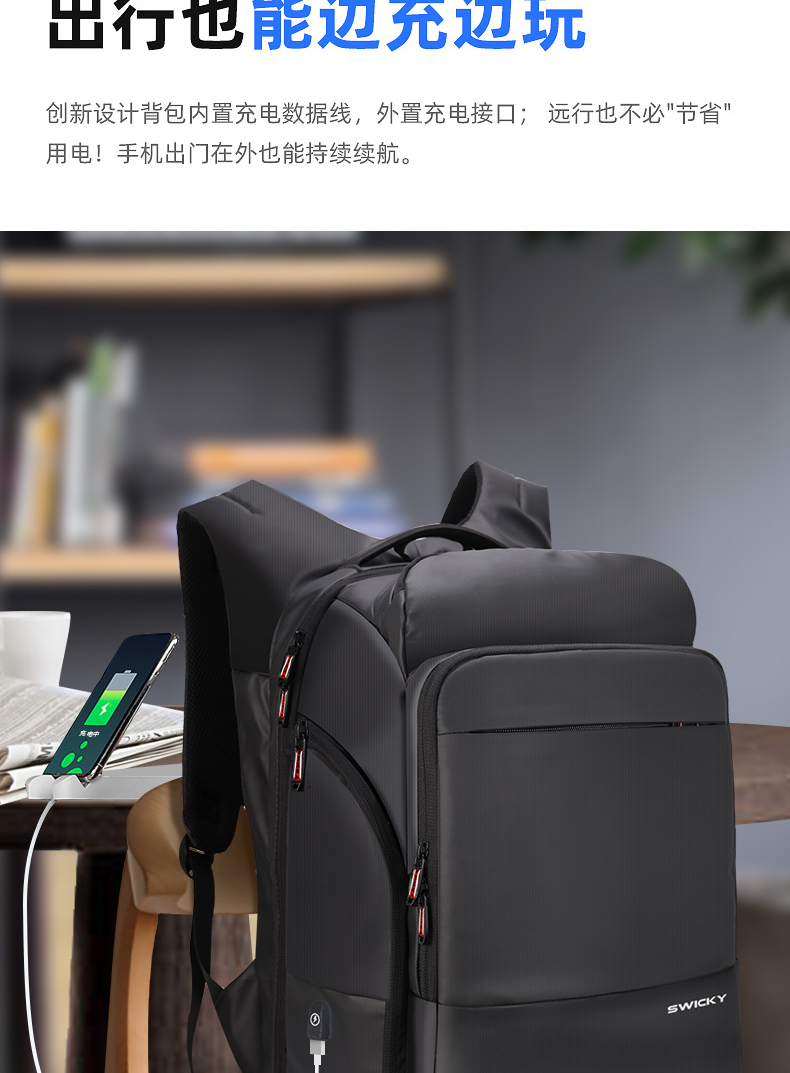 SWICKY 多功能大容量 商务双肩包 88006普通大号15.6寸 黑色
