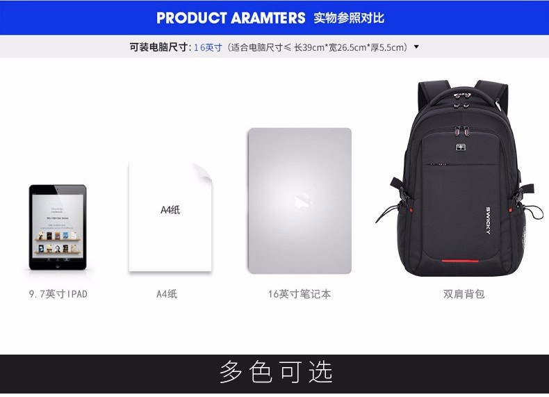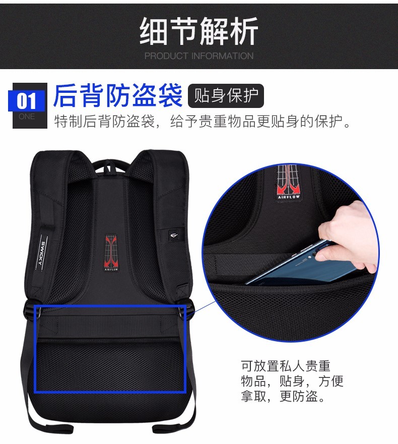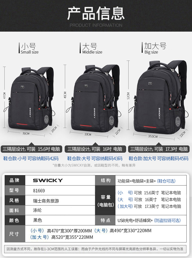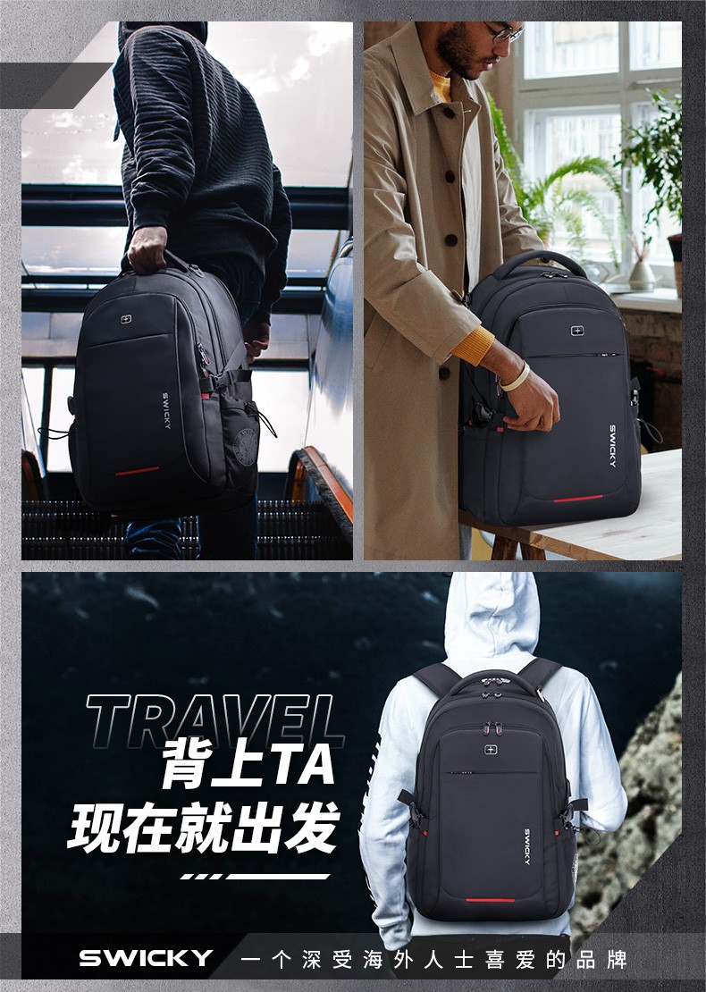 SWICKY 多功能休闲 商务双肩包81669 灰色大号