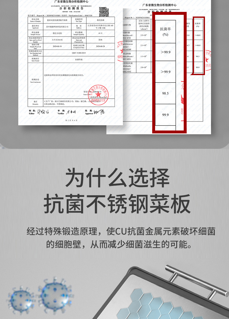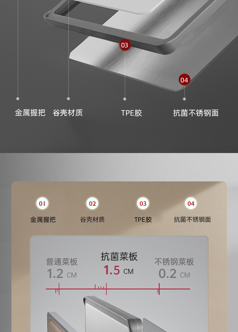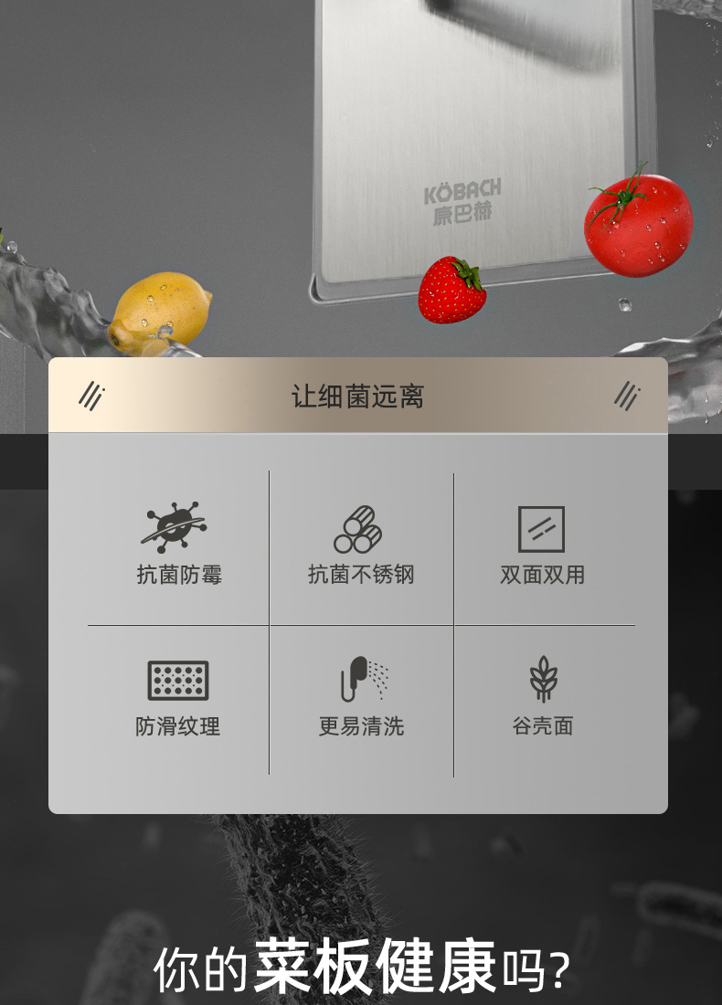 康巴赫悦厨抗菌不锈钢双面菜板 KQY-S38K(单位:个) 白色