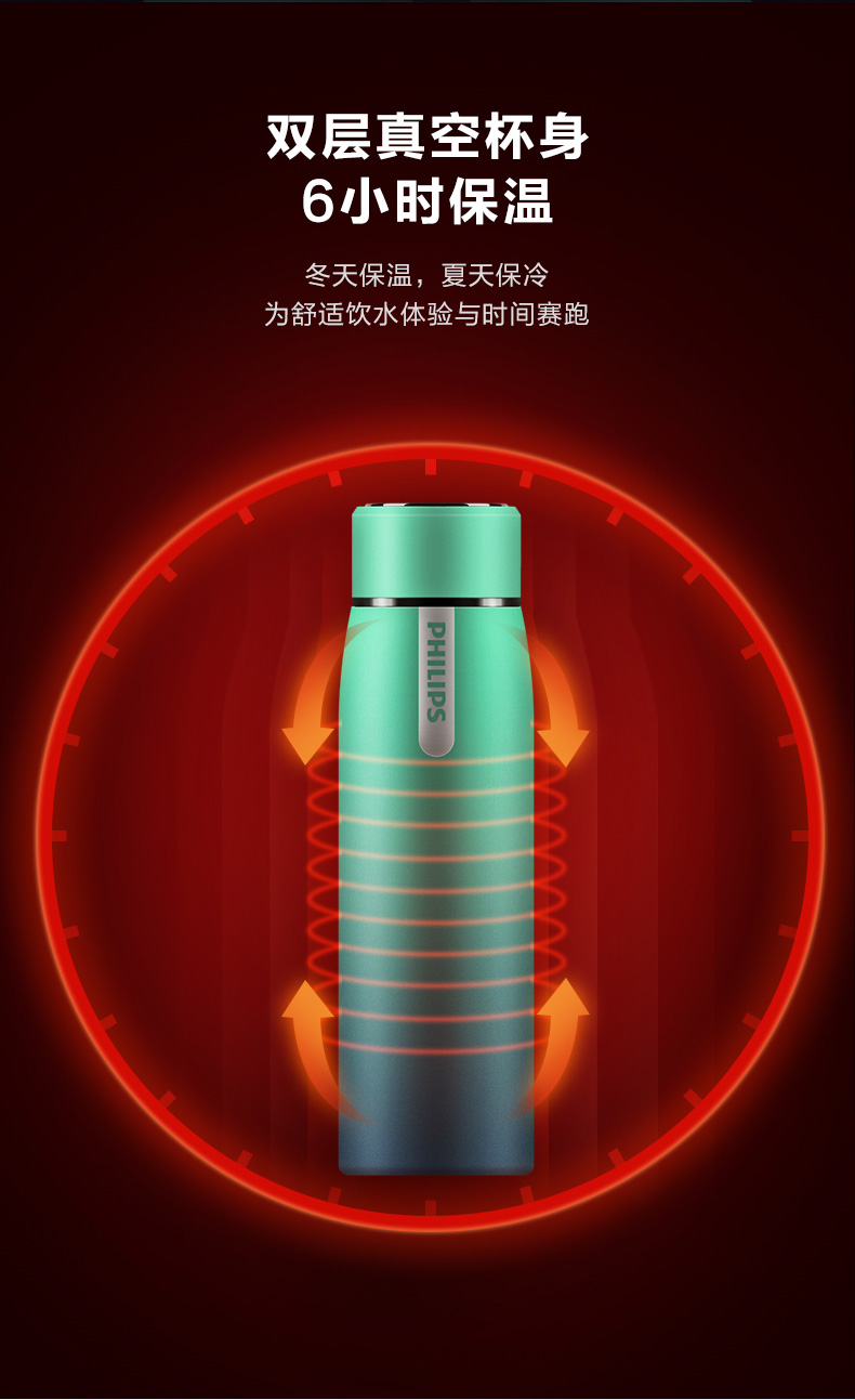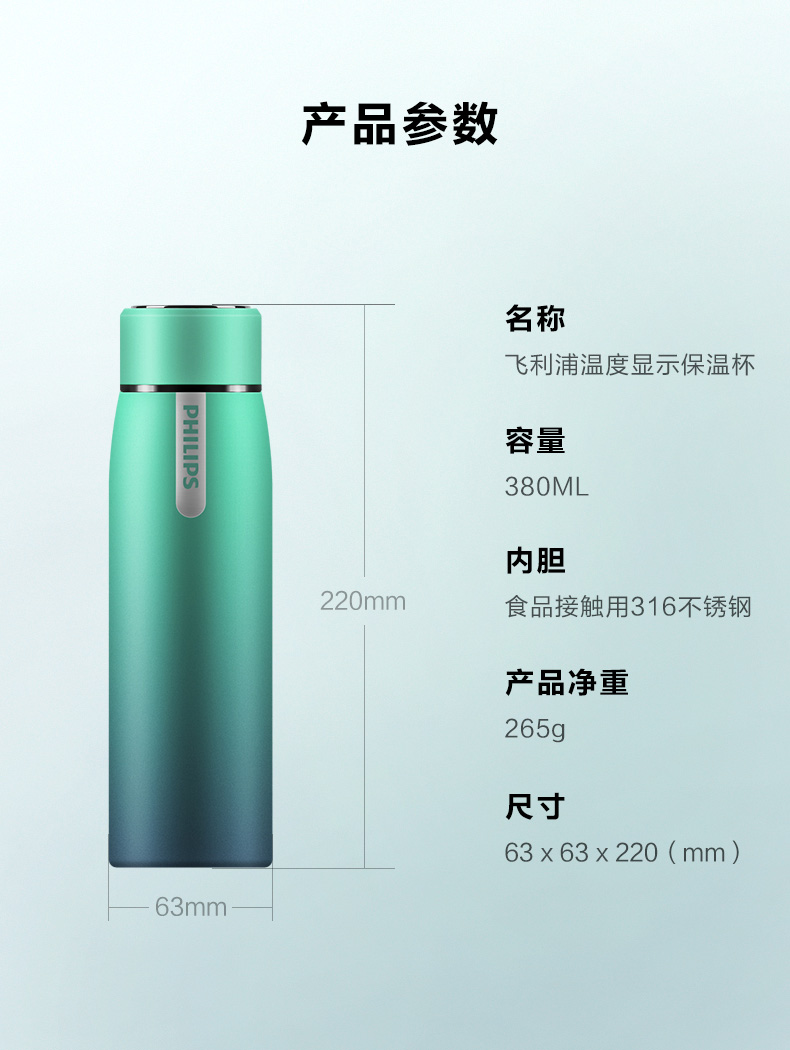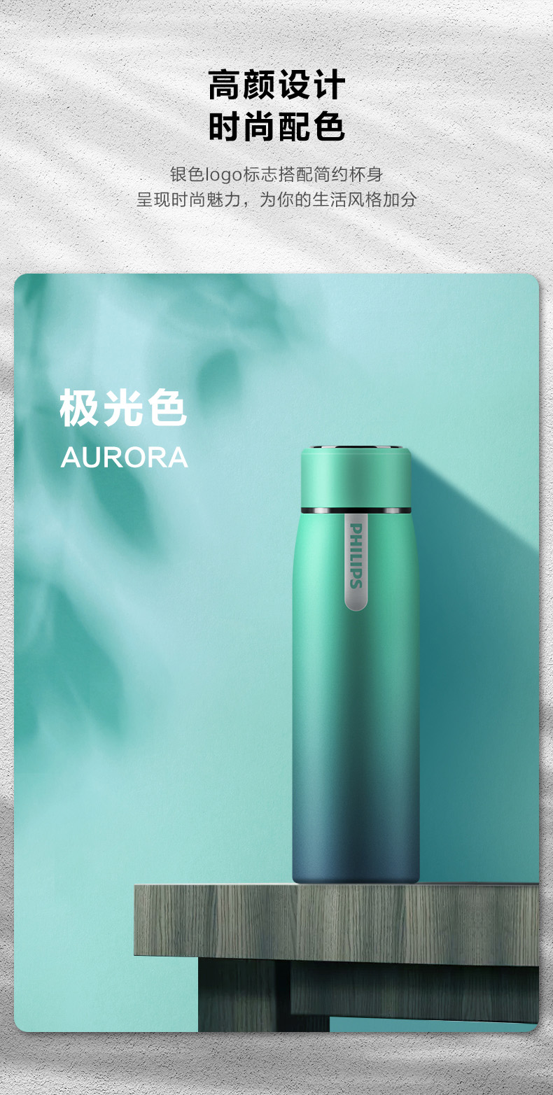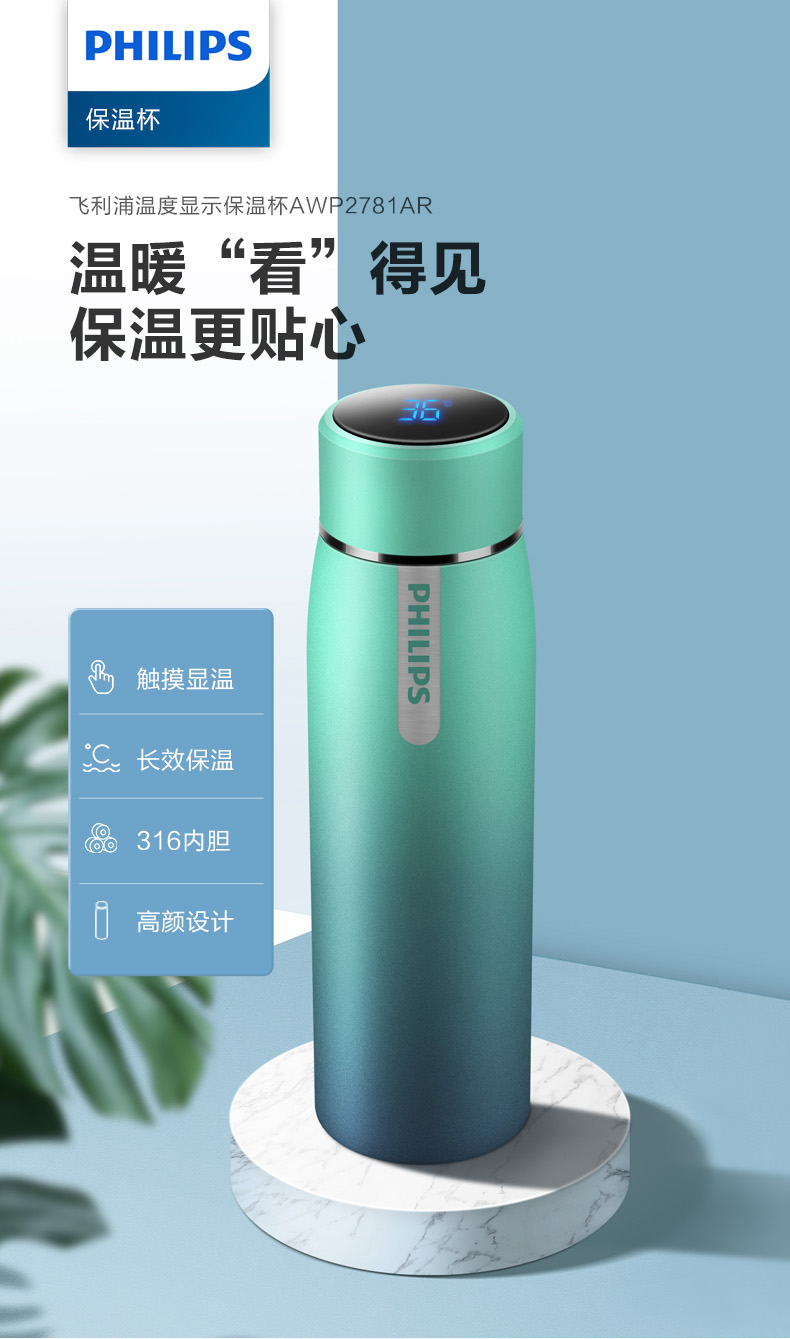 飞利浦(PHILIPS)智能温度显示保温杯AWP2781AR 极光色