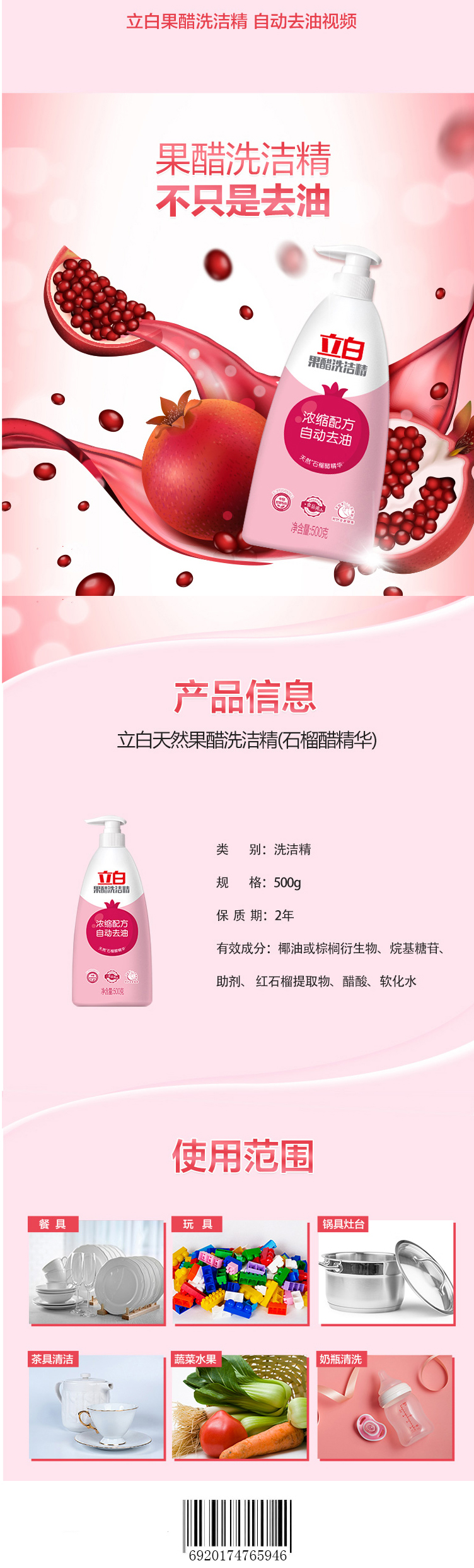 立白果醋石榴洗洁精500g(单位:瓶) 粉色