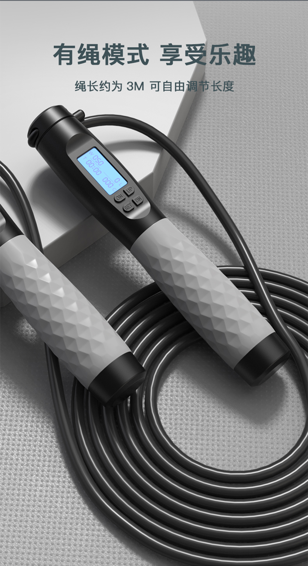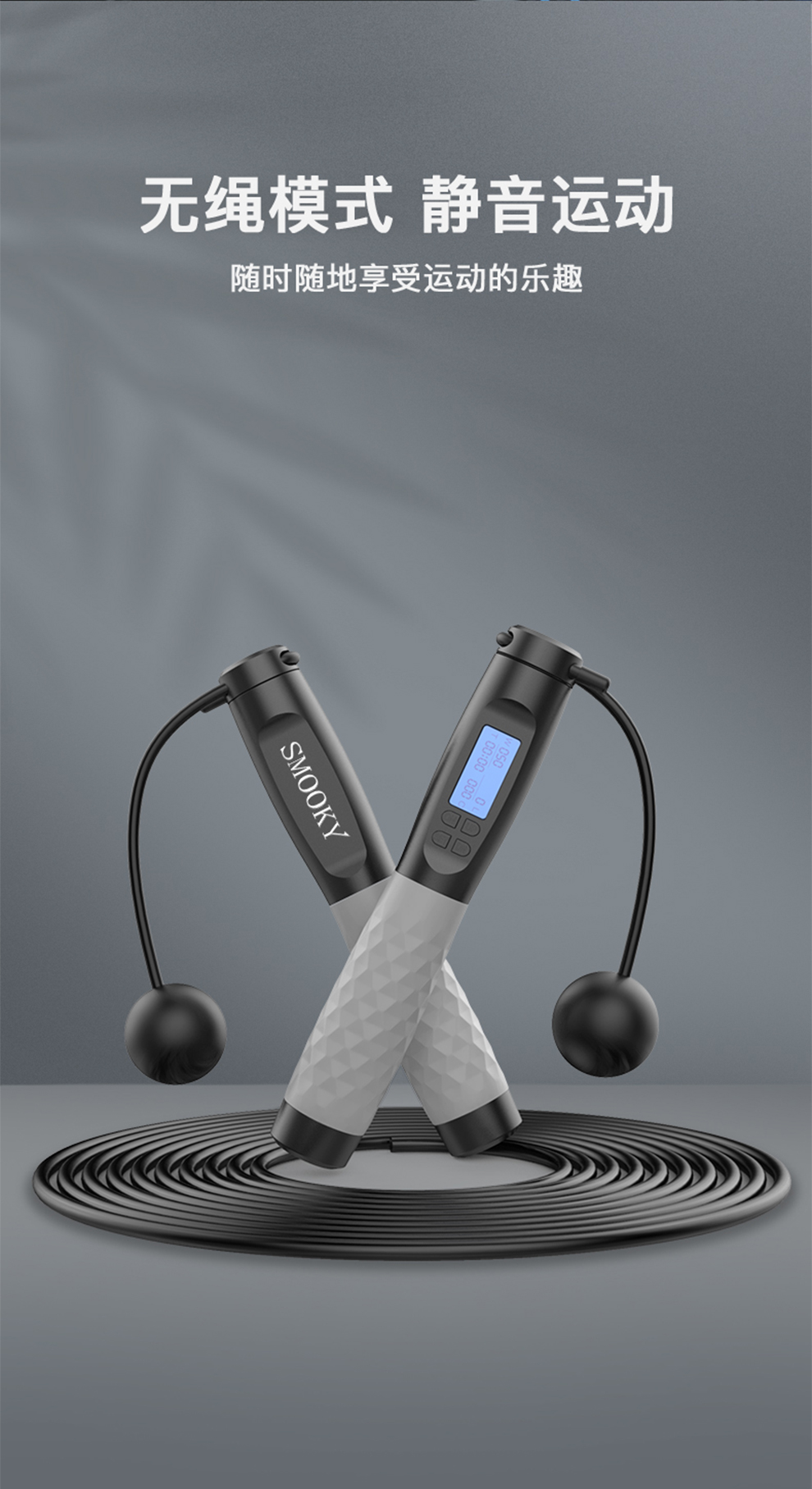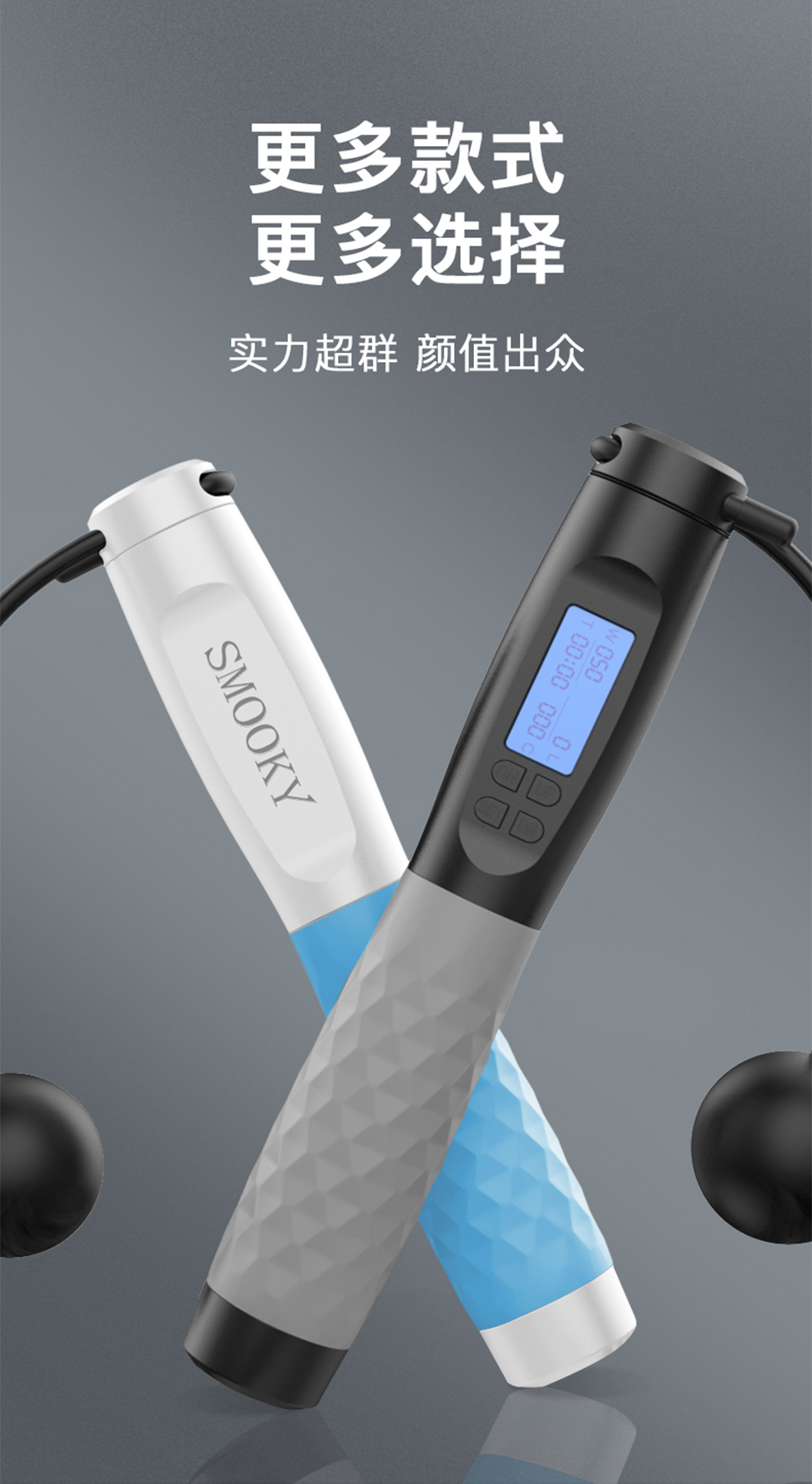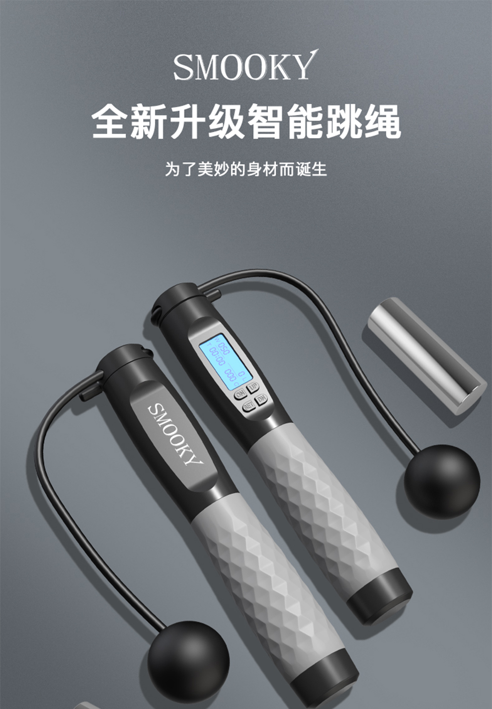 SMOOKY专业计数跳绳无绳成人钢丝轴承防绕绳健身器 【有绳+无绳+负重】 灰色