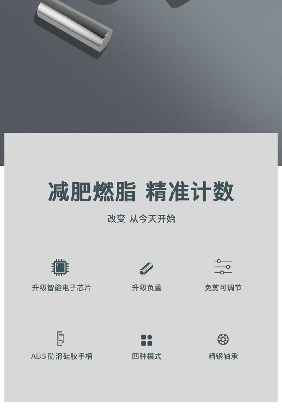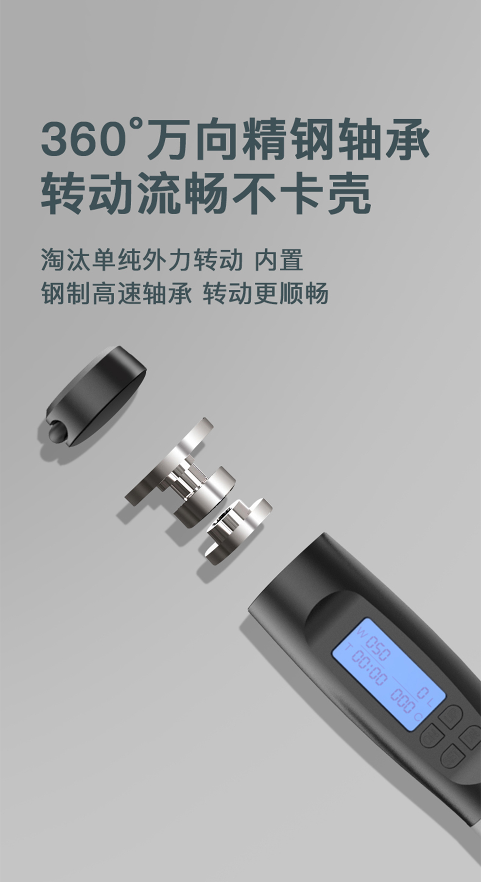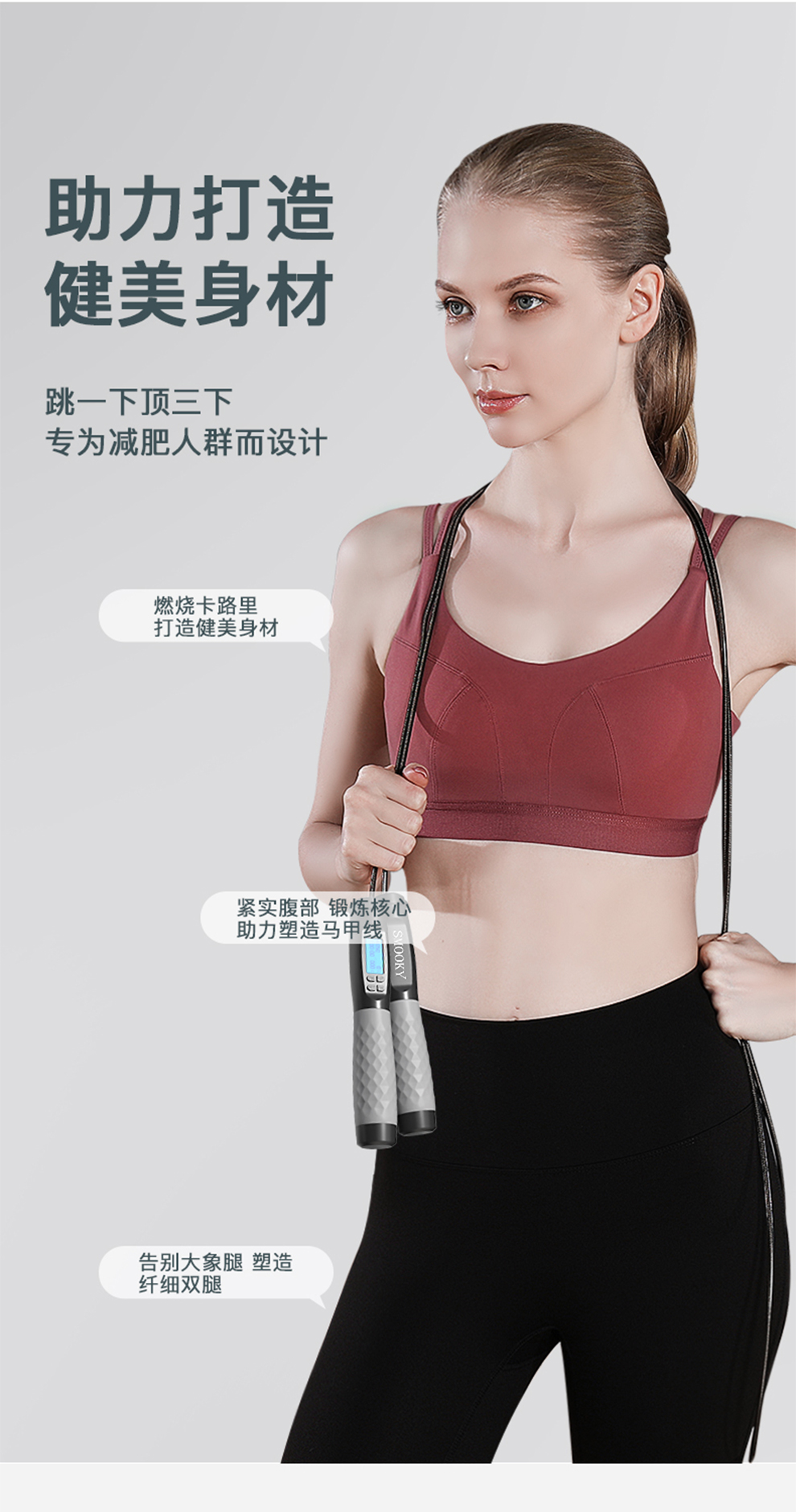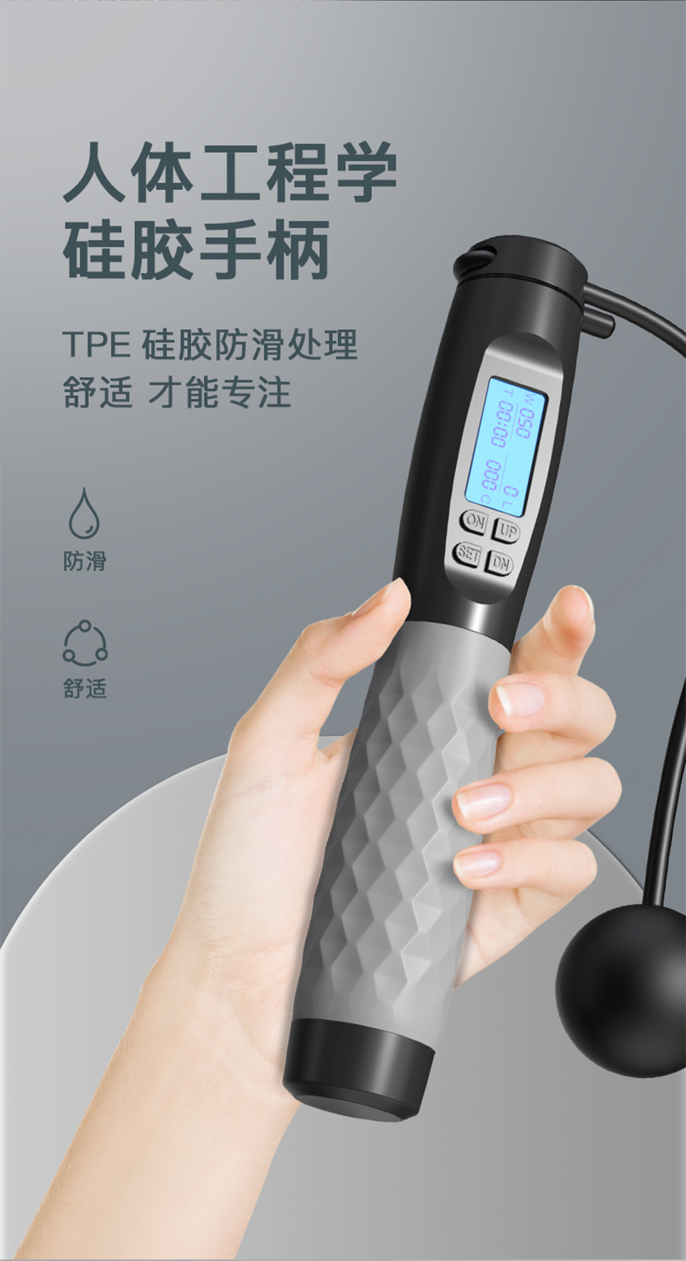 SMOOKY专业计数跳绳无绳成人钢丝轴承防绕绳健身器 【有绳+无绳+负重】 灰色